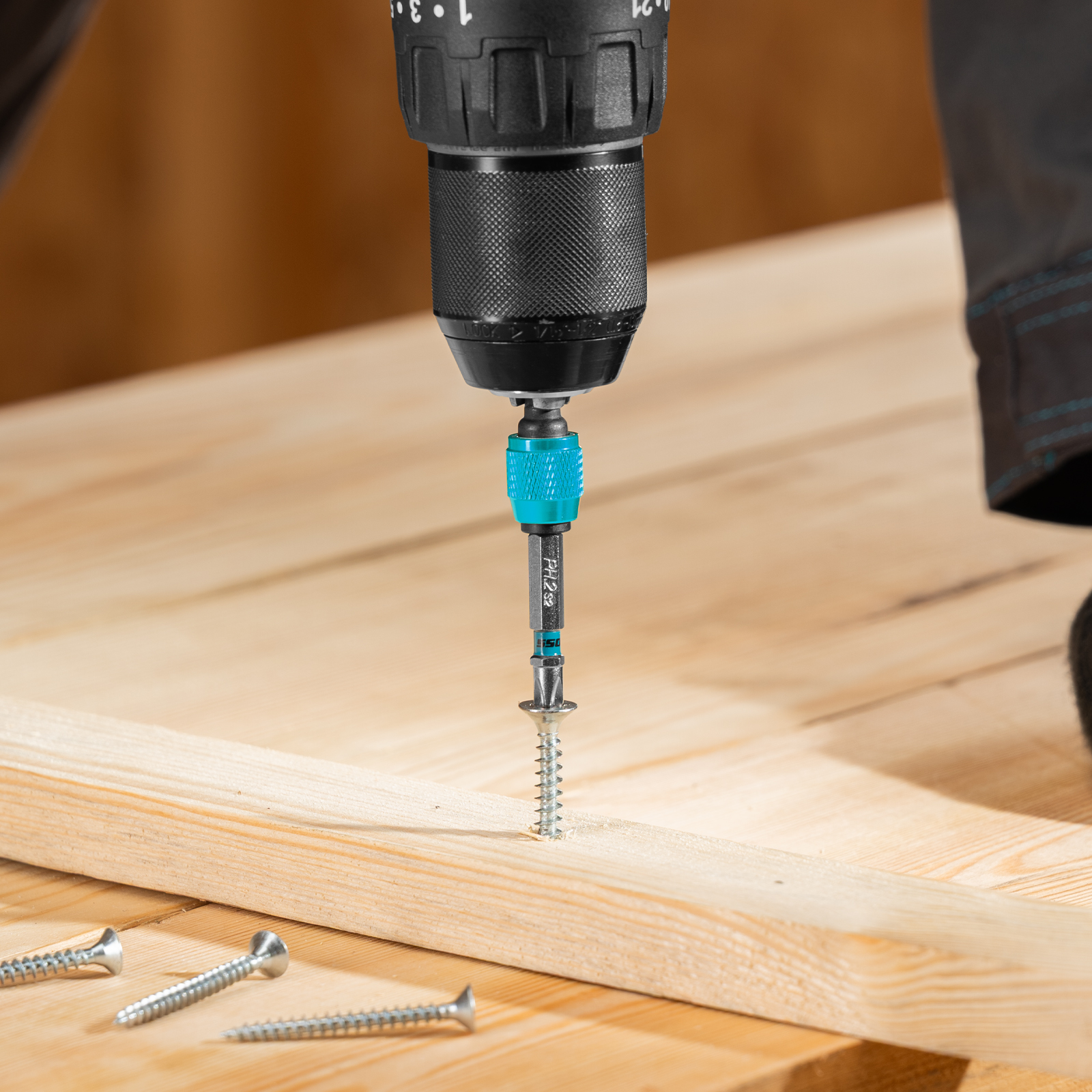 - Удобная эксплуатация — намагниченные шлицы облегчают работу и позволяют направлять шуруповерт с насаженным крепежом одной рукой, а другой придерживать закрепляемую деталь.