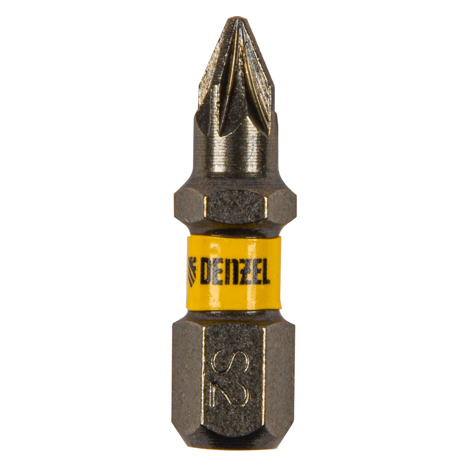- Защита от подделок — цветное кольцо с логотипом ТМ Denzel на каждой бите подтверждает оригинальность товара.