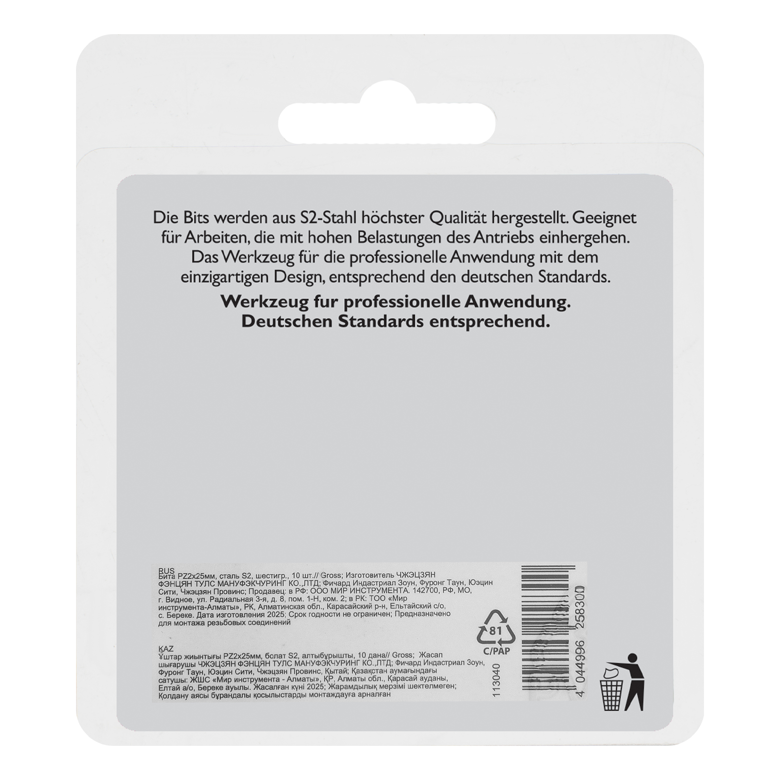 - Удобная упаковка — оснастка поставляется в жестком блистере с европодвесом, 10 штук хватит на целую бригаду.