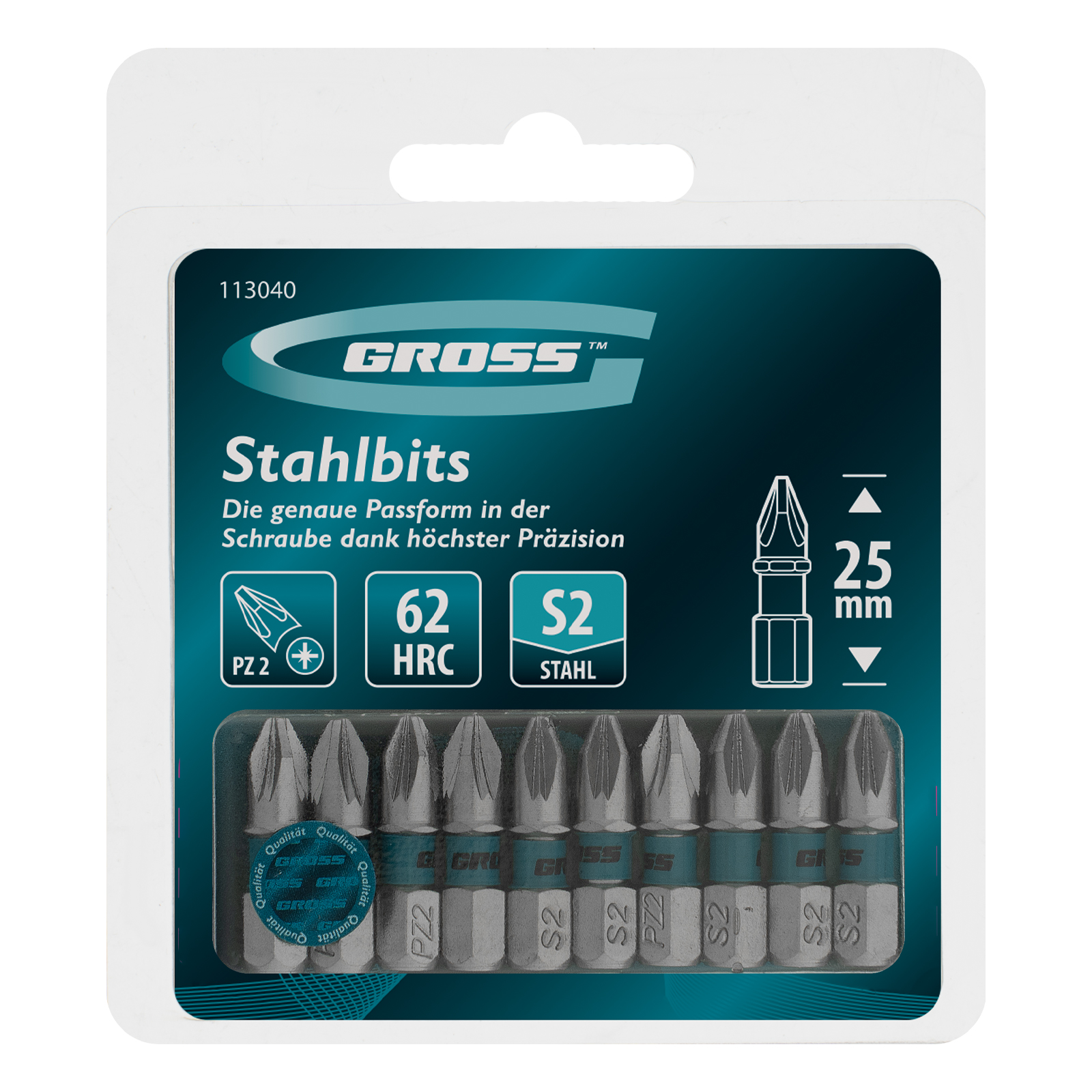 Биты PZ2 х 25 мм Gross 113040 с шестигранным хвостовиком 1/4″, из стали S2, используются с шуруповертами. Предназначены для закручивания и откручивания шурупов, саморезов и другого резьбового крепежа. У шлица PZ предусмотрено 4 дополнительных ребра — такое решение предотвращает проскальзывание биты в крепеже, повышает точность и эффективность работ.