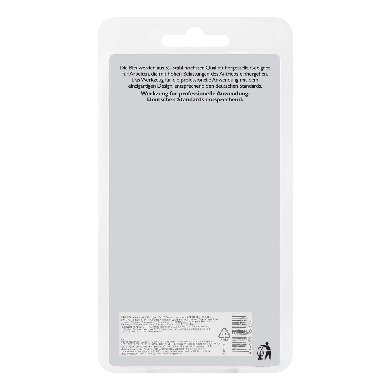 - Износоустойчивость — биты изготовлены из японской легированной стали S2 повышенной прочности и закалены до твердости 62 HRC.