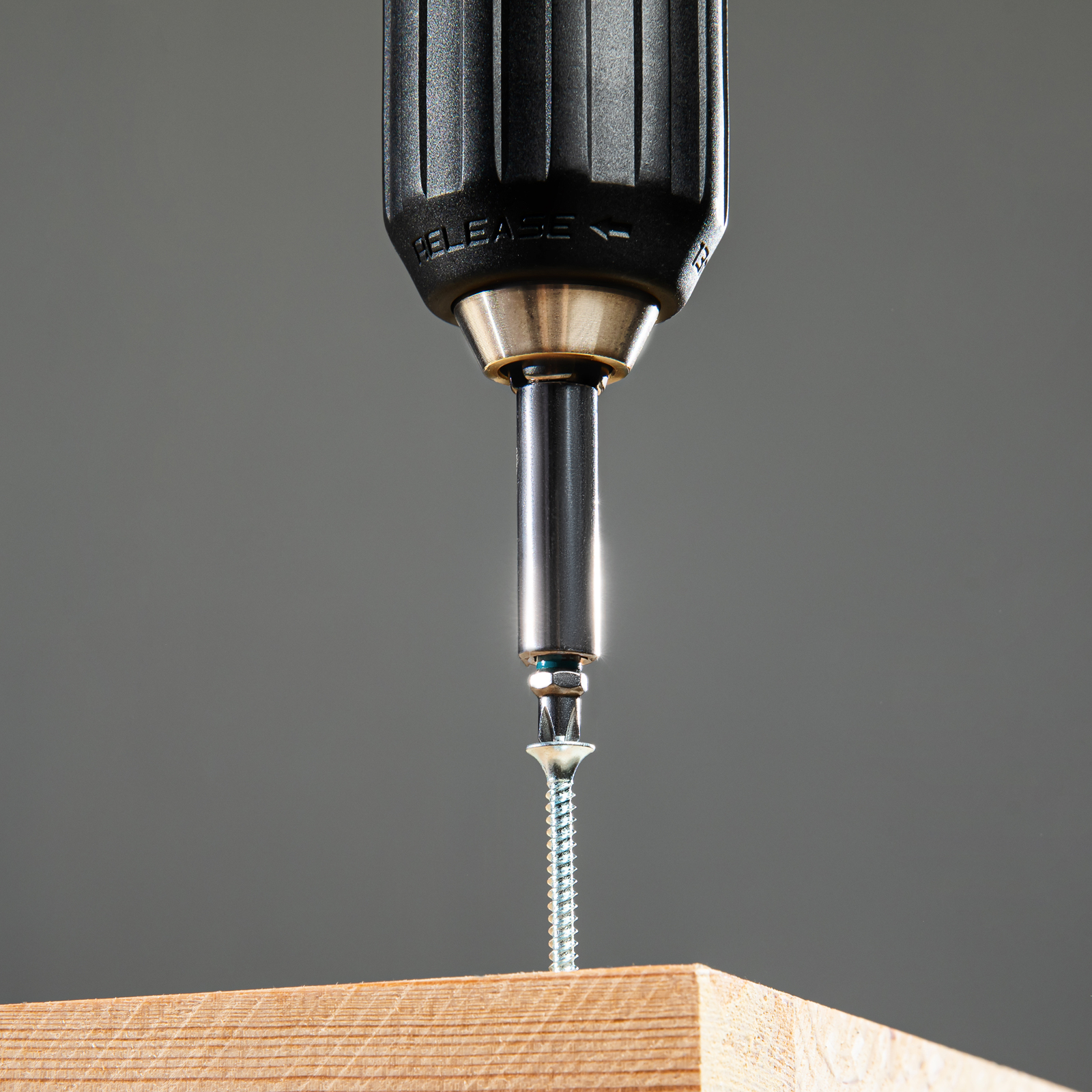- Намагниченный шлиц — можно направлять шуруповерт с насаженным крепежом одной рукой, а другой придерживать закрепляемую деталь.