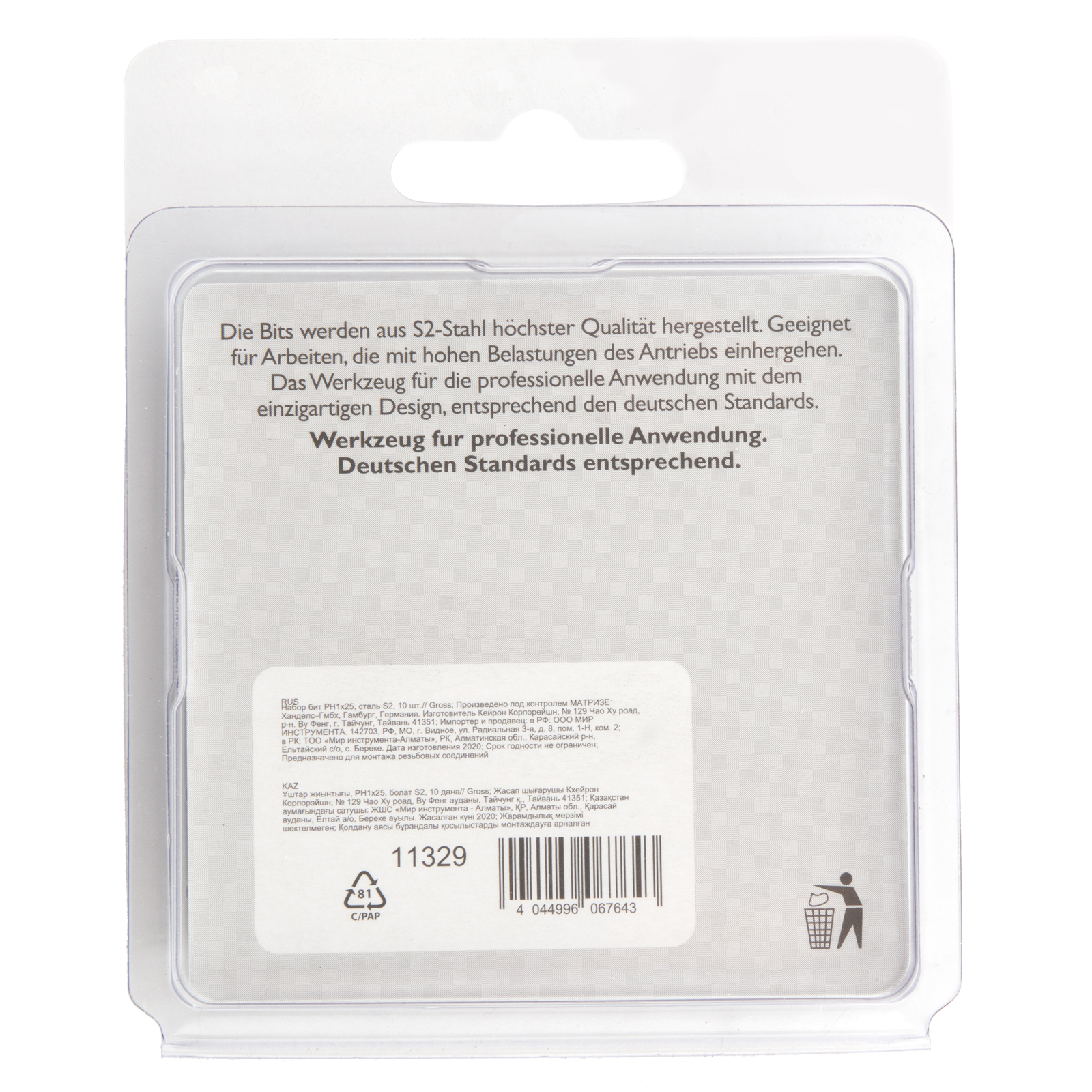 Набор бит Gross 11329 состоит из 10 наиболее востребованных крестообразных насадок типа PH1 длиной 25 мм, с хвостовиком 1/4 дюйма, изготовленных из стали S2 и предназначенных для использования с шуруповертами и отвертками-адаптерами. За счет оптимальной геометрии и высокой точности исполнения шлица биты не проскальзывают в головках крепежа. Оснастки используются для монтажа и демонтажа саморезов по дереву, шурупов и других резьбовых крепежей.