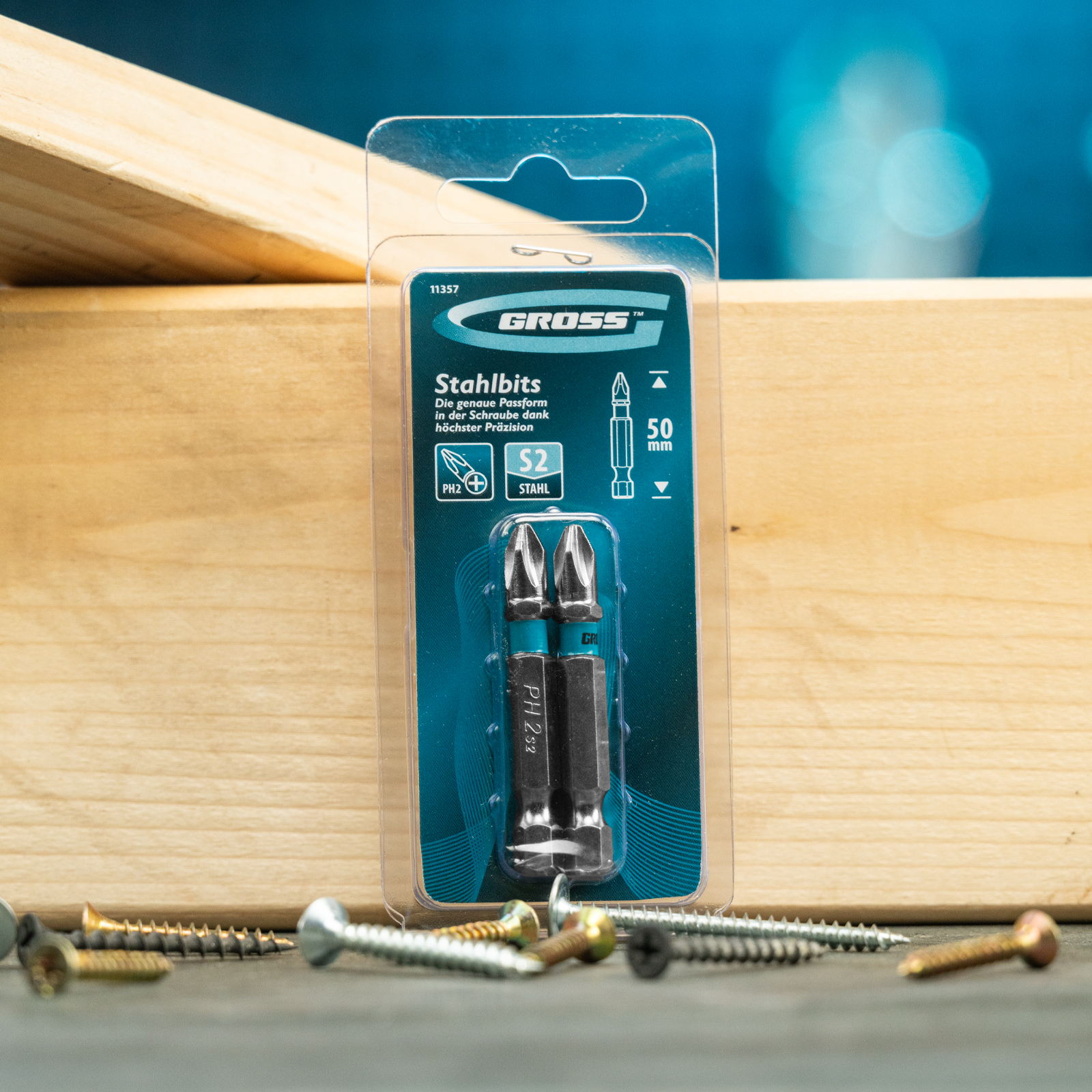 Набор бит Gross 11357 состоит из 2 наиболее востребованных крестообразных насадок типа PH2 длиной 50 мм, с хвостовиком 1/4 дюйма, изготовленных из стали S2 и предназначенных для использования с шуруповертами и отвертками-адаптерами. За счет оптимальной геометрии и высокой точности исполнения шлица биты не проскальзывают в головках крепежа. Оснастки используются для монтажа и демонтажа саморезов по дереву, шурупов и других резьбовых крепежей.