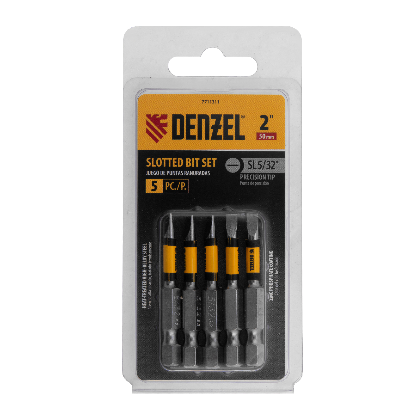 Набор бит Denzel 7711311 типоразмера SL4 x 50, 5 шт. в упаковке, предназначен для монтажа и демонтажа резьбовых соединений со шлицем SL. Биты используются в качестве оснастки для шуруповертов, электрических отверток и отверток-держателей, пригодятся для проведения сборочных, ремонтных и различных бытовых работ.