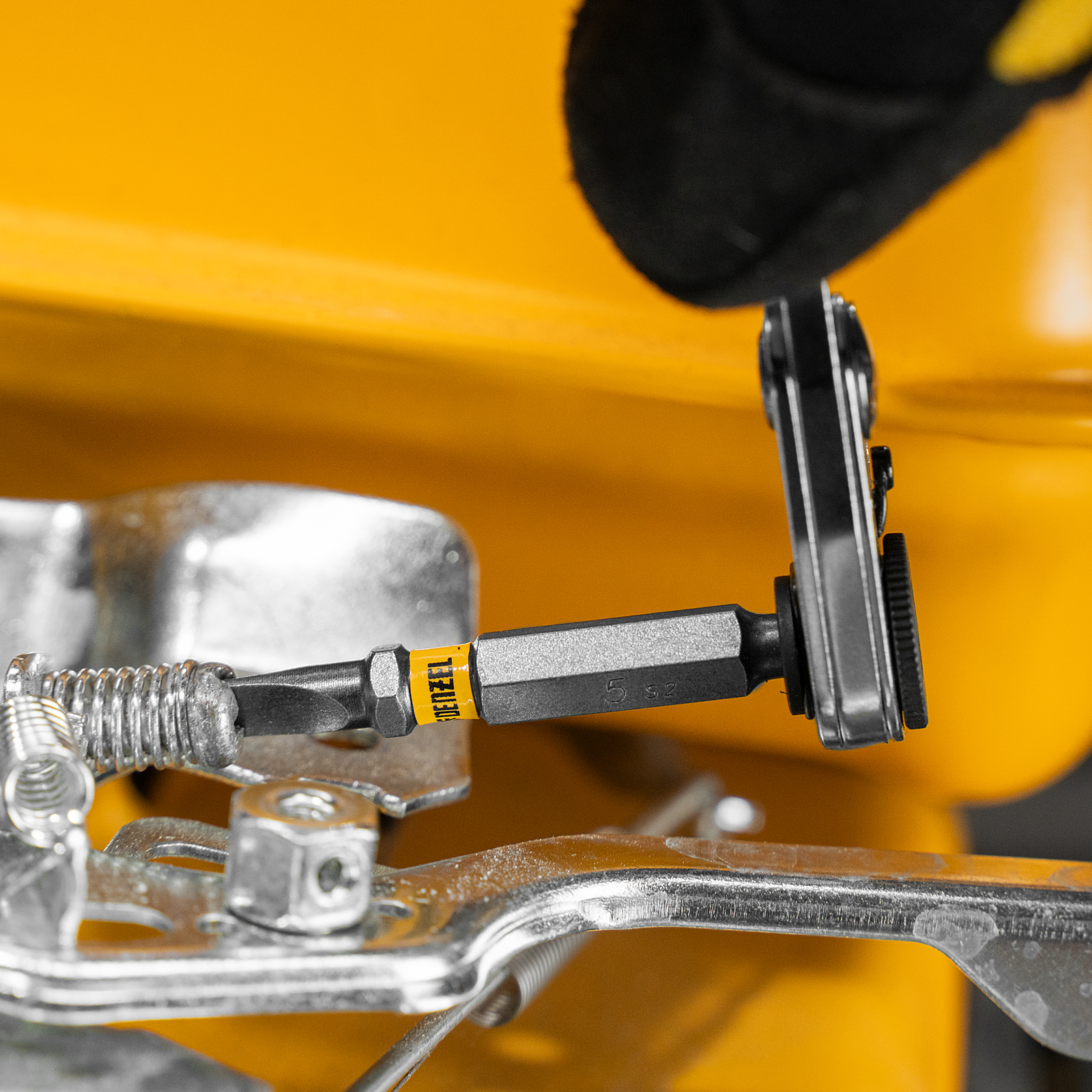 - Устойчивость к деформации при высоких нагрузках — биты изготовлены из японской легированной стали S2 и закалены до твердости 58 HRC.