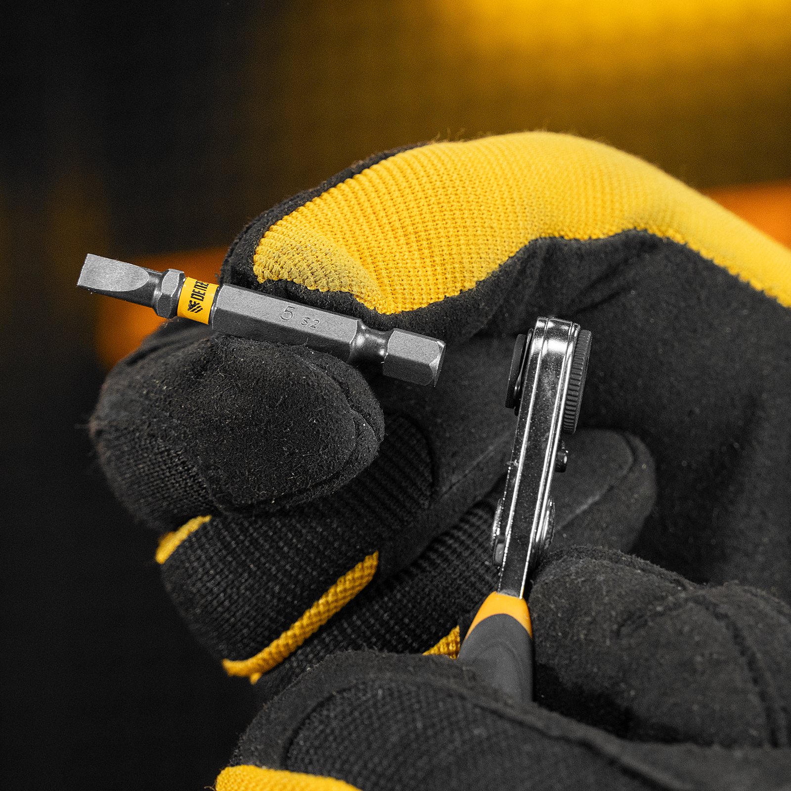 - Высокоточное исполнение — оптимальная геометрия шлица и максимальный контроль на производстве в Тайване позволили добиться выверенности каждой биты и предотвратить проскальзывание рабочей части в головке крепежа.