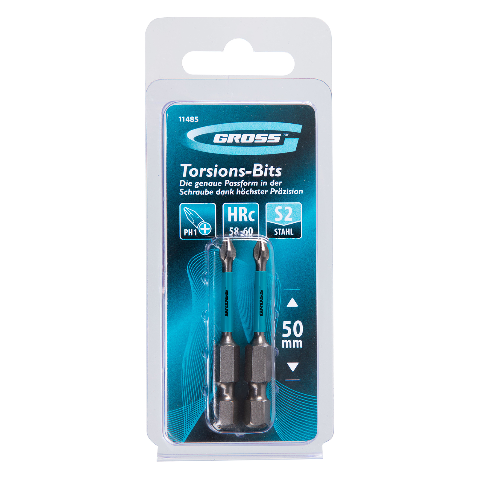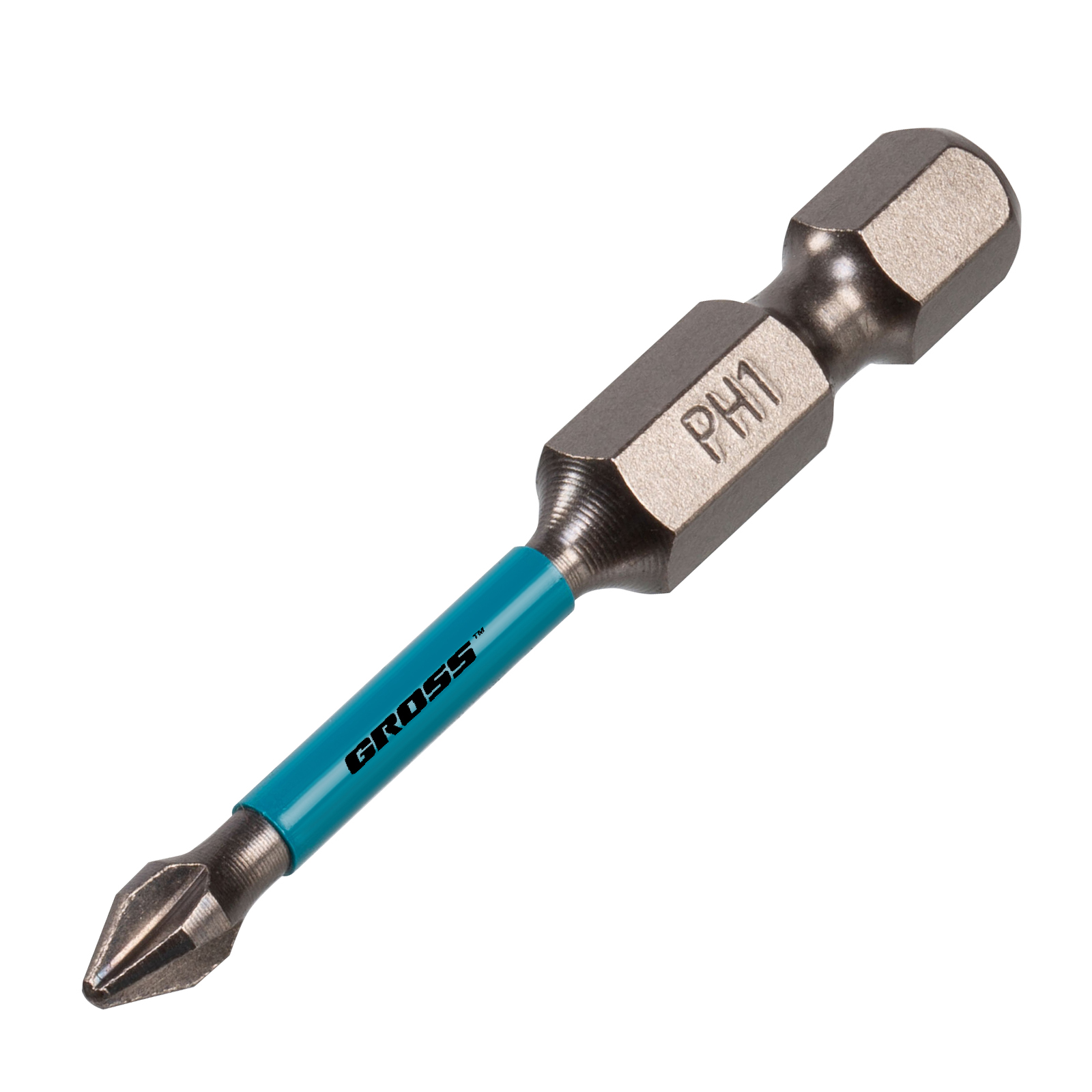 Набор торсионных бит PH1 x 50 мм Gross 11485, 2 шт., предназначен для монтажа и демонтажа резьбовых соединений с помощью ударного шуруповерта. Он незаменим в строительных, слесарных и монтажных работах, в автосервисах, при проведении ремонта в доме. Торсионная зона способна пружинить, за счет чего она частично амортизирует тангенциальный удар от шуруповерта. Такое решение позволяет равномерно распределить нагрузку по бите и избежать поломки шлица.