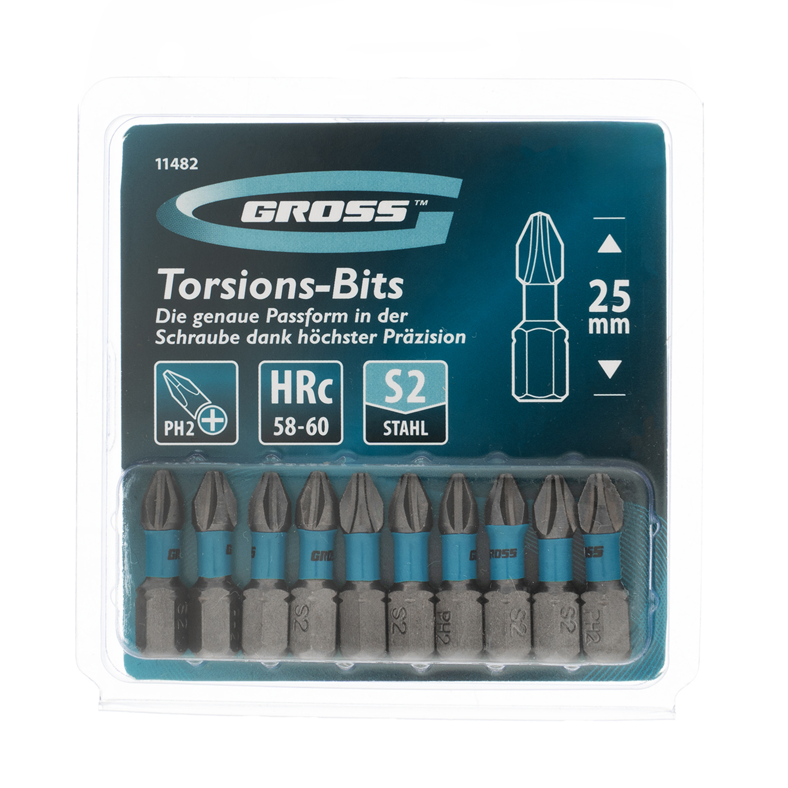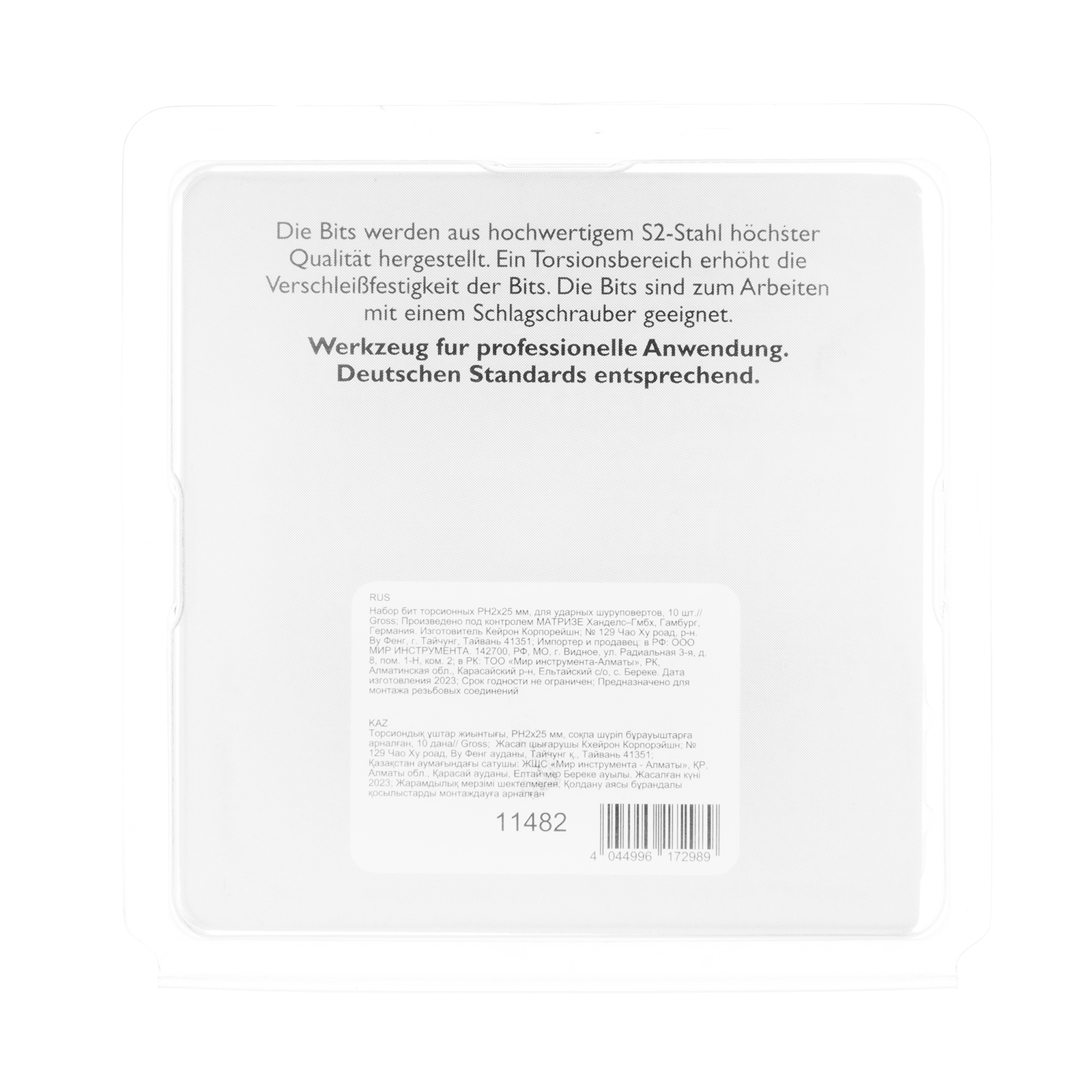 Набор торсионных бит PH2 x 25 мм Gross 11482, 10 шт., предназначен для монтажа и демонтажа резьбовых соединений с помощью ударного шуруповерта. Он незаменим в строительных, слесарных и монтажных работах, в автосервисах, при проведении ремонта в доме. Торсионная зона способна пружинить, за счет чего она частично амортизирует тангенциальный удар от шуруповерта. Такое решение позволяет равномерно распределить нагрузку по бите и избежать поломки шлица.