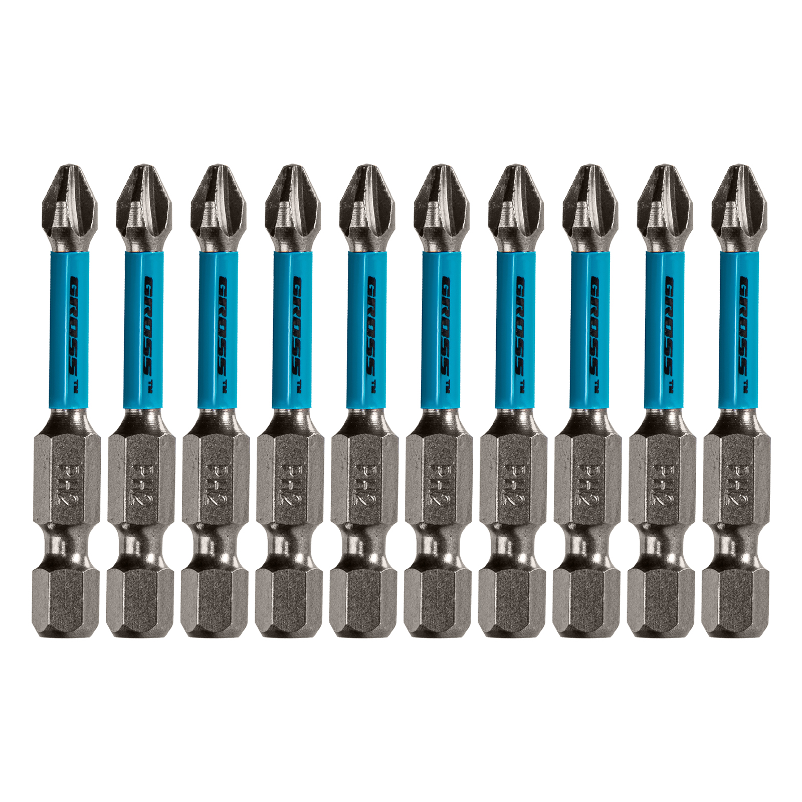 Набор торсионных бит PH2 x 50 мм Gross 11493, 10 шт., предназначен для монтажа и демонтажа резьбовых соединений с помощью ударного шуруповерта. Он незаменим в строительных, слесарных и монтажных работах, в автосервисах, при проведении ремонта в доме. Торсионная зона способна пружинить, за счет чего она частично амортизирует тангенциальный удар от шуруповерта. Такое решение позволяет равномерно распределить нагрузку по бите и избежать поломки шлица.
