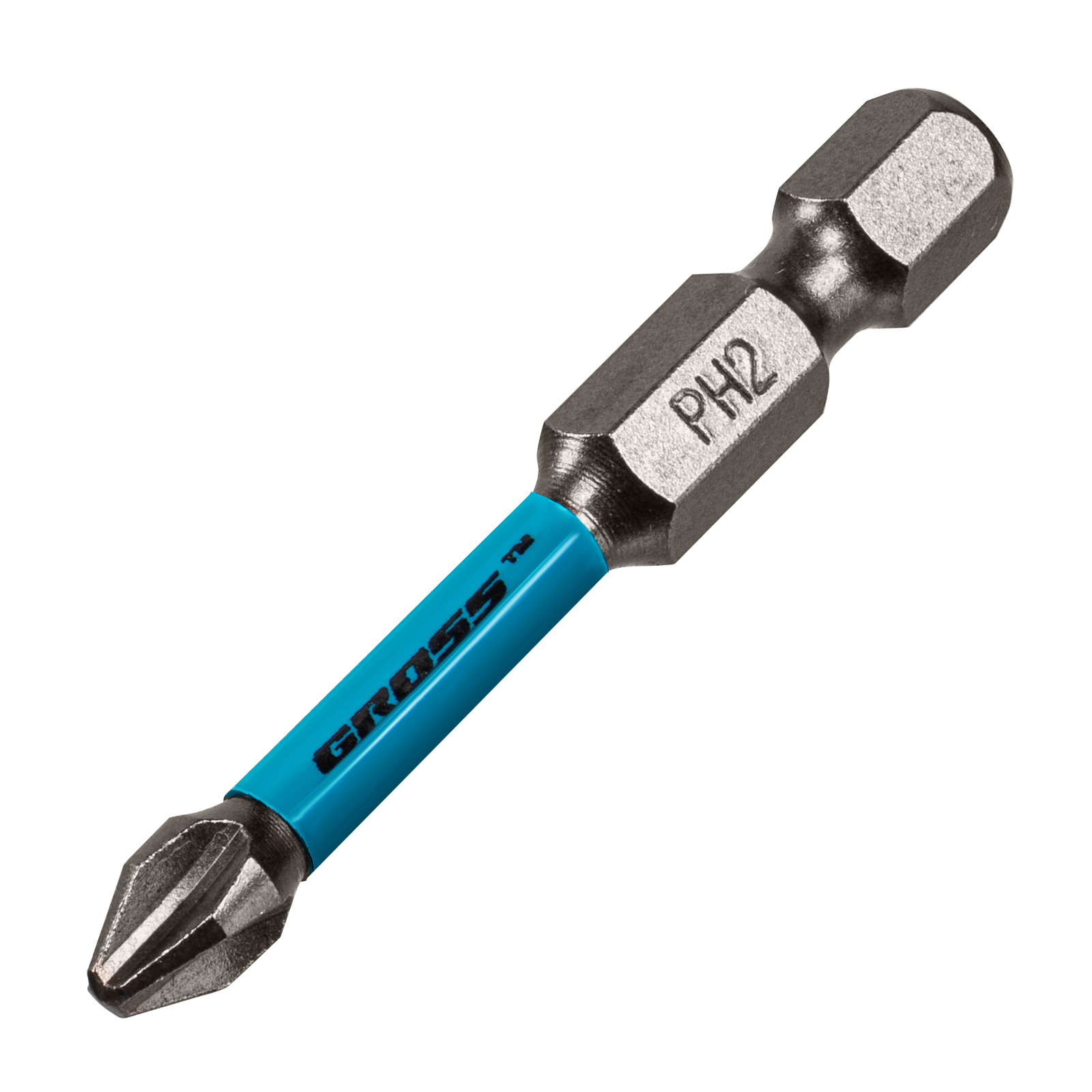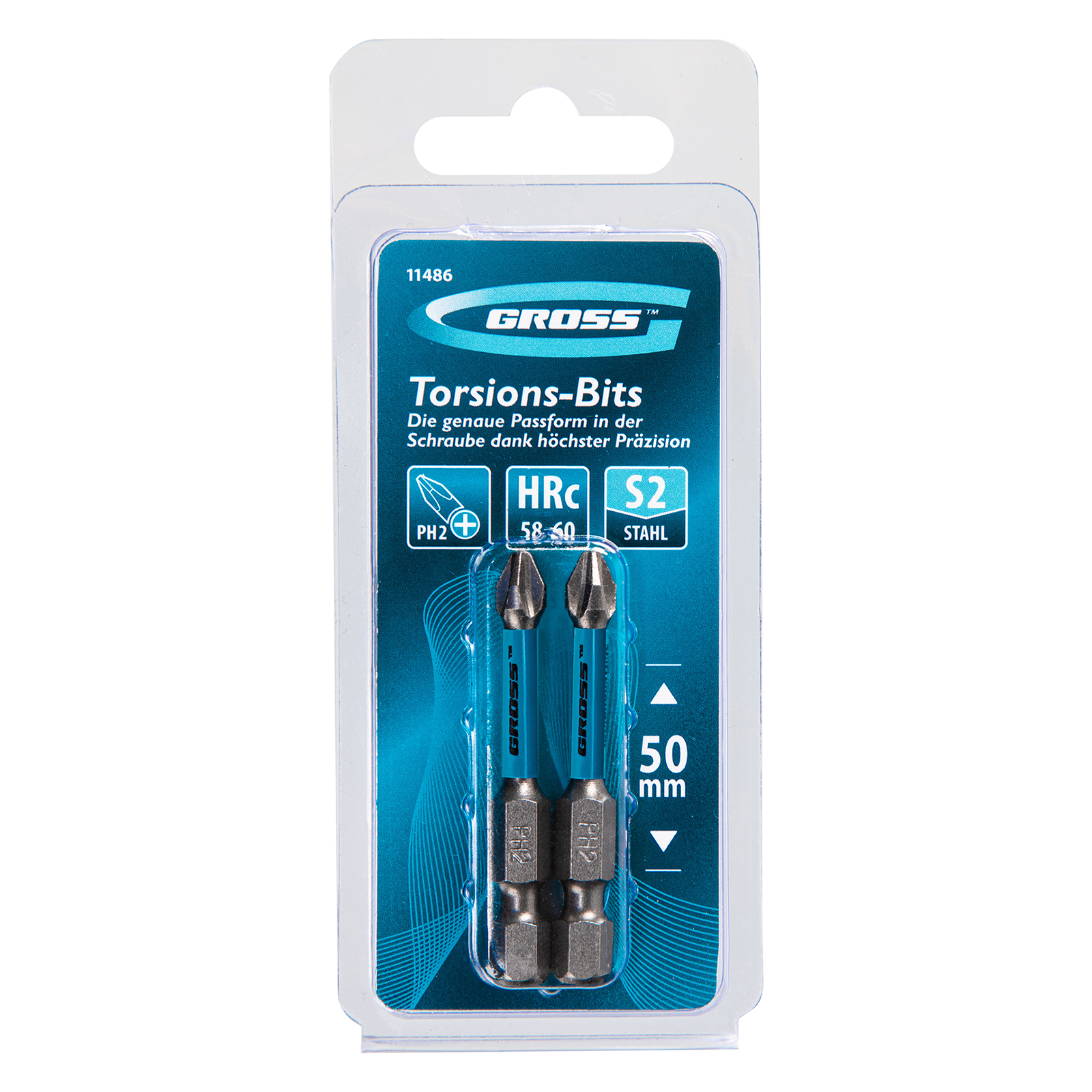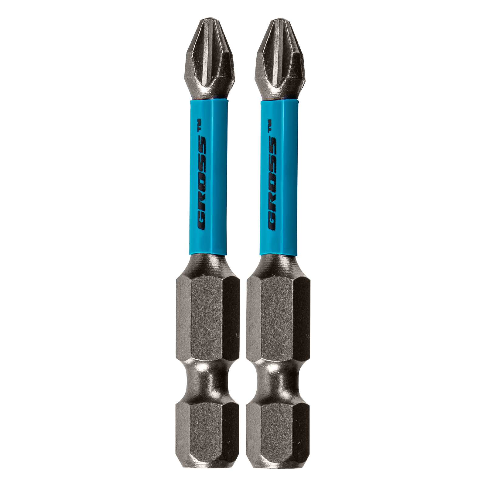 Набор торсионных бит PH2 x 50 мм Gross 11486, 2 шт., предназначен для монтажа и демонтажа резьбовых соединений с помощью ударного шуруповерта. Он незаменим в строительных, слесарных и монтажных работах, в автосервисах, при проведении ремонта в доме. Торсионная зона способна пружинить, за счет чего она частично амортизирует тангенциальный удар от шуруповерта. Такое решение позволяет равномерно распределить нагрузку по бите и избежать поломки шлица.