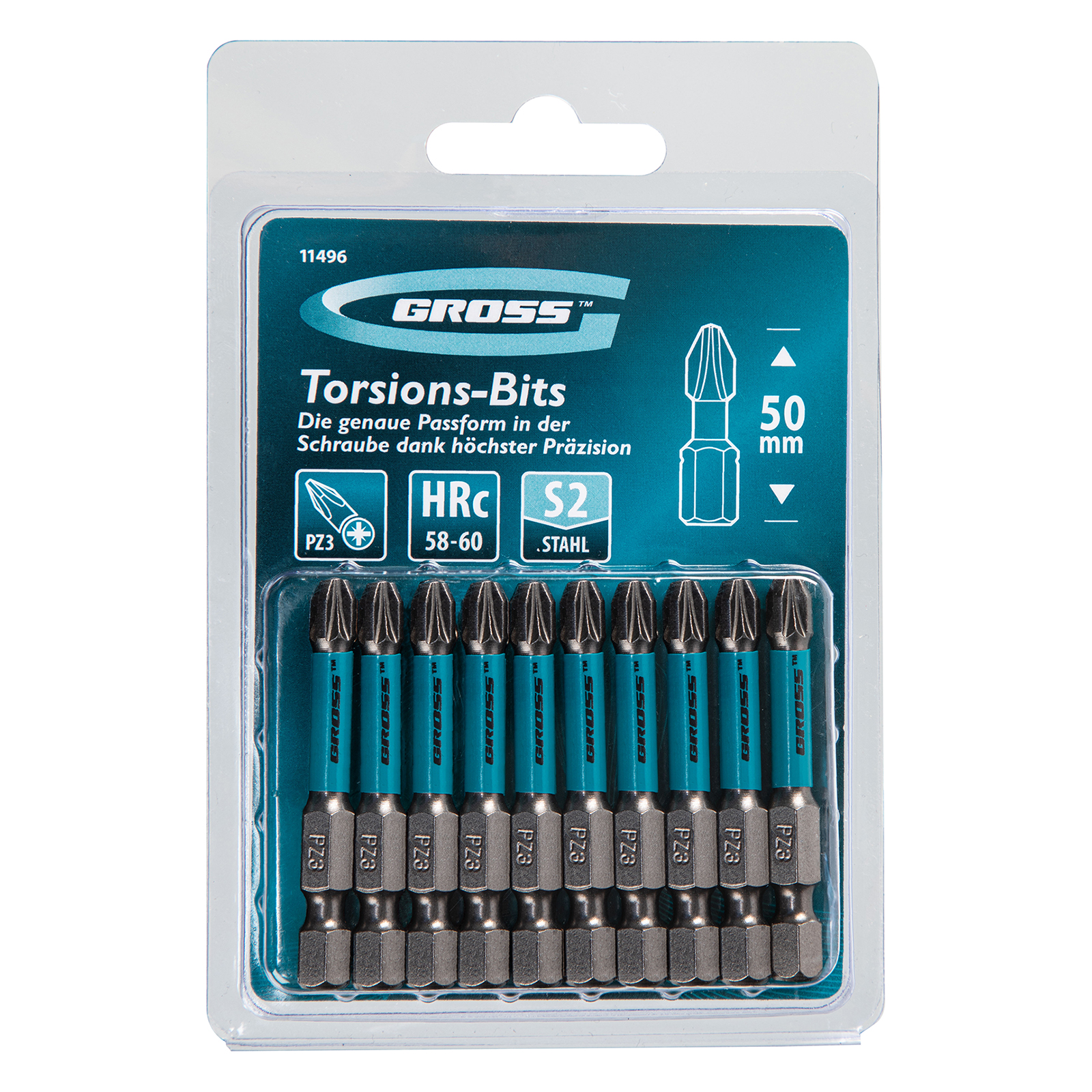 Набор торсионных бит PZ3 x 50 мм Gross 11496, 10 шт., предназначен для монтажа и демонтажа резьбовых соединений с помощью ударного шуруповерта. Он незаменим в строительных, слесарных и монтажных работах, в автосервисах, при проведении ремонта в доме. Торсионная зона способна пружинить, за счет чего она частично амортизирует тангенциальный удар от шуруповерта. Такое решение позволяет равномерно распределить нагрузку по бите и избежать поломки шлица.
