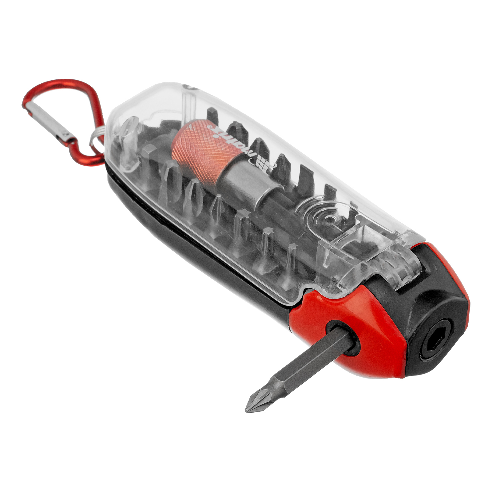 - Удобное хранение и транспортировка — биты поставляются в пластиковом боксе со съемным карабином для подвешивания на поясе.