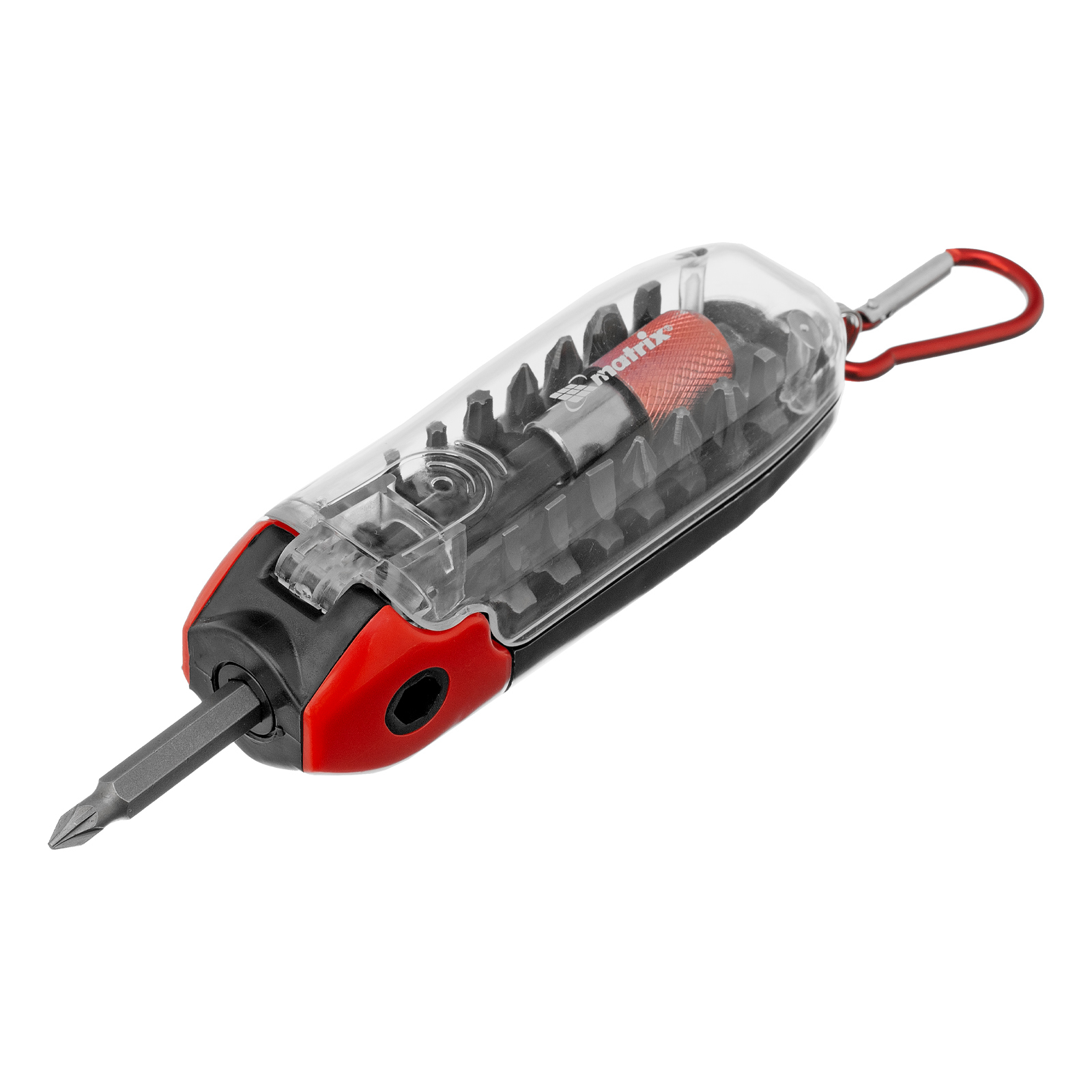 - Продуманная конструкция — благодаря встроенному присоединительному шестиграннику для битодержателя бокс при необходимости трансформируется в отвертку.