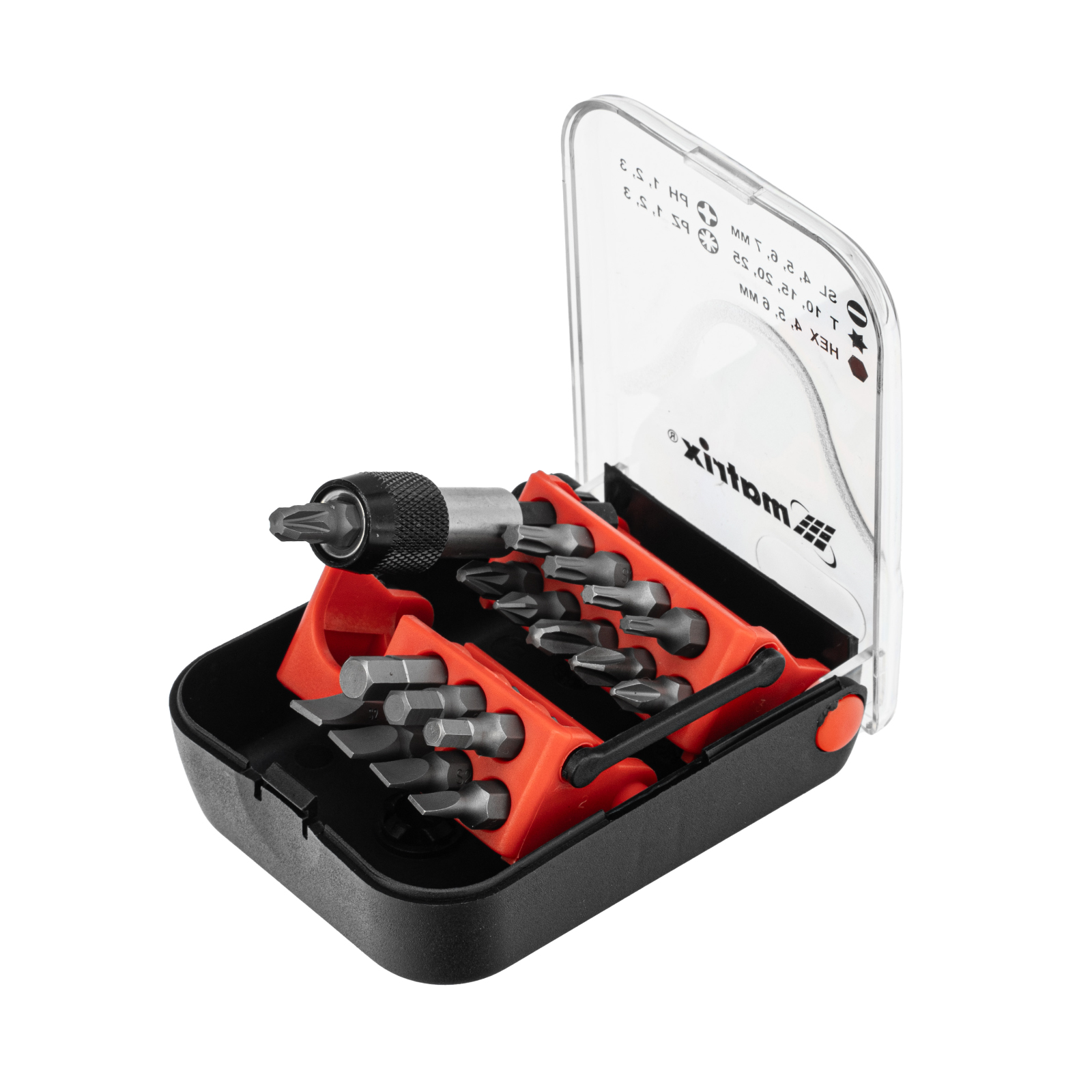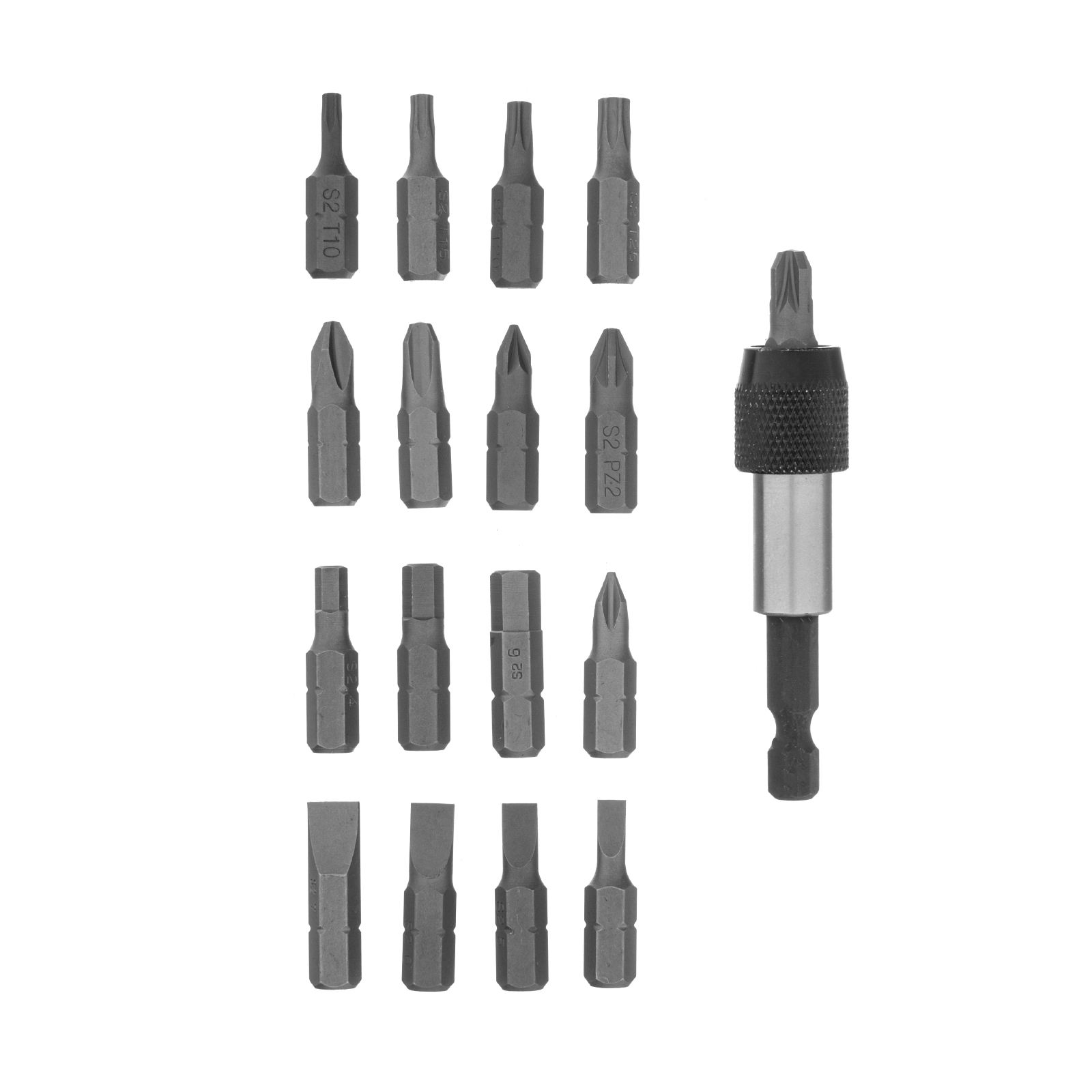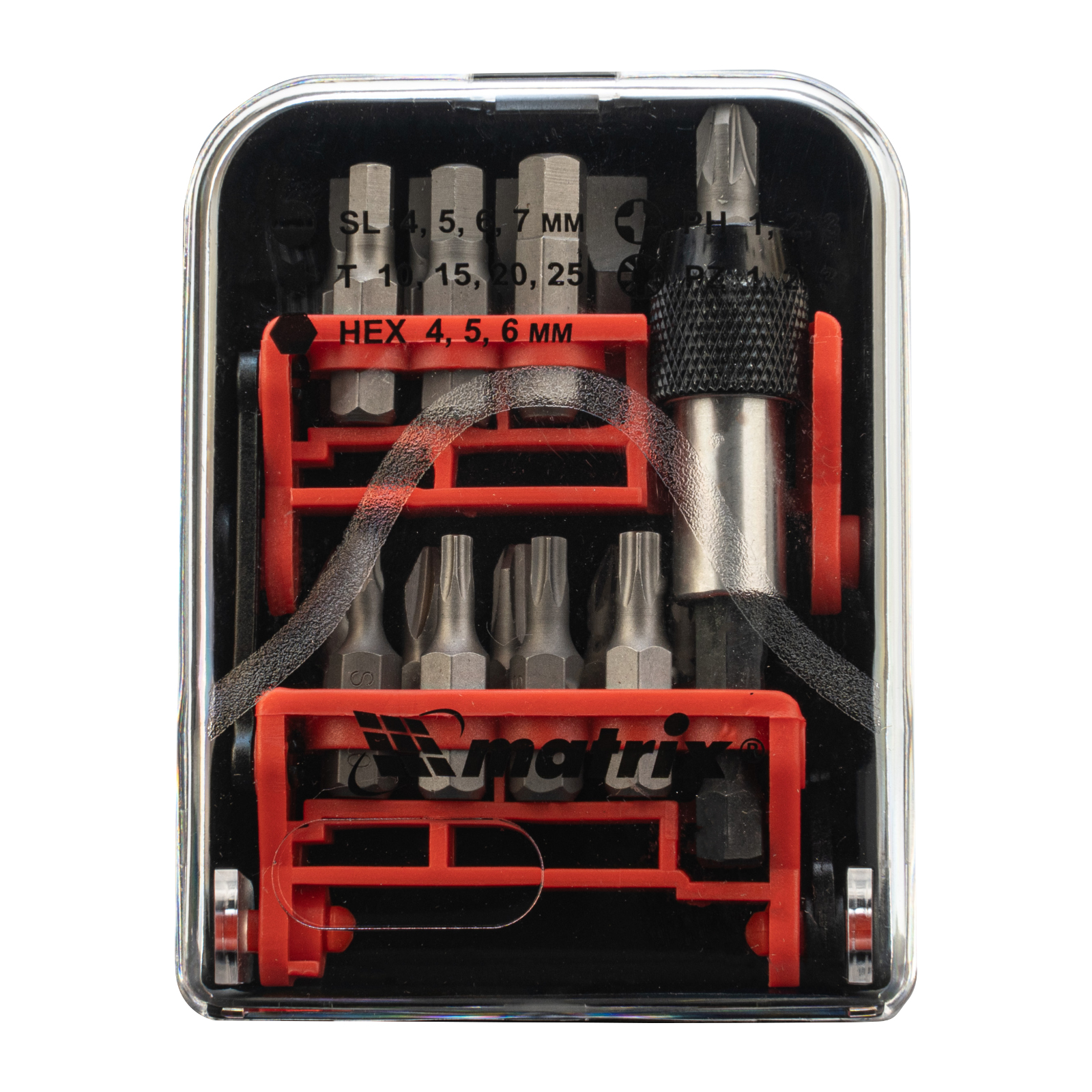 Набор Matrix 11316 включает 18 предметов из стали S2: биты и адаптер для бит, упакованные в пластиковый бокс. Подходит для шуруповертов, отверток для сменных бит и реверсивных отверток, и применяется для проведения монтажных/демонтажных работ с резьбовыми соединениями. В комплект входят биты следующих размеров: PH и PZ 1-3 мм, SL 4-7 мм, TORX 10 мм, 15 мм, 20 мм, 25 мм и HEX 4-6 мм. Набор будет полезен для ремонта техники, сборки мебели, пригодится дома, на даче и в гараже.