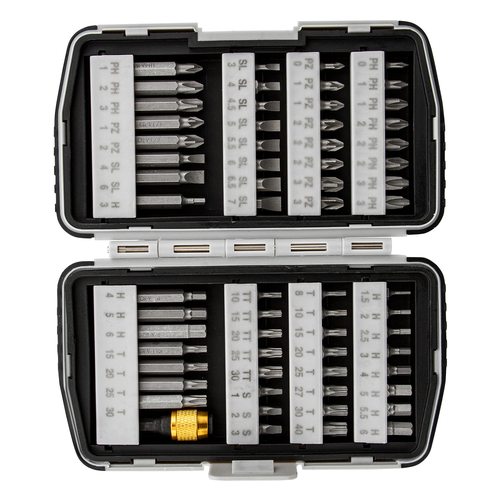 Набор Matrix 11327 состоит из 64 предметов, упакованных в пластиковый бокс, и включает биты из стали CrV и магнитный адаптер. Кроме бит длиной 25 мм в комплект входит 15 насадок длиной 50 мм для работы в труднодоступных местах. Оснастки используются совместно с шуруповертами и отвертками для монтажа и демонтажа резьбовых соединений.