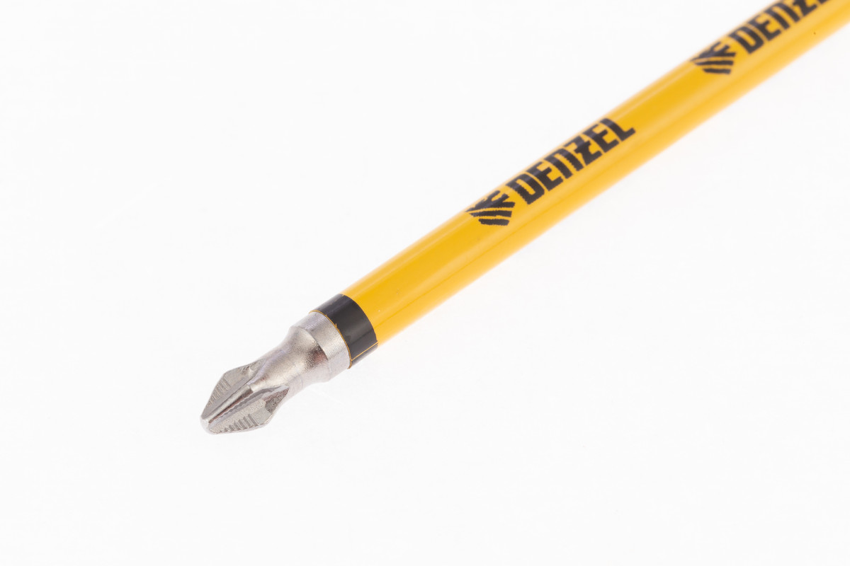 - Каждая бита защищена от подделок — об этом свидетельствует цветное кольцо с логотипом ТМ Denzel.