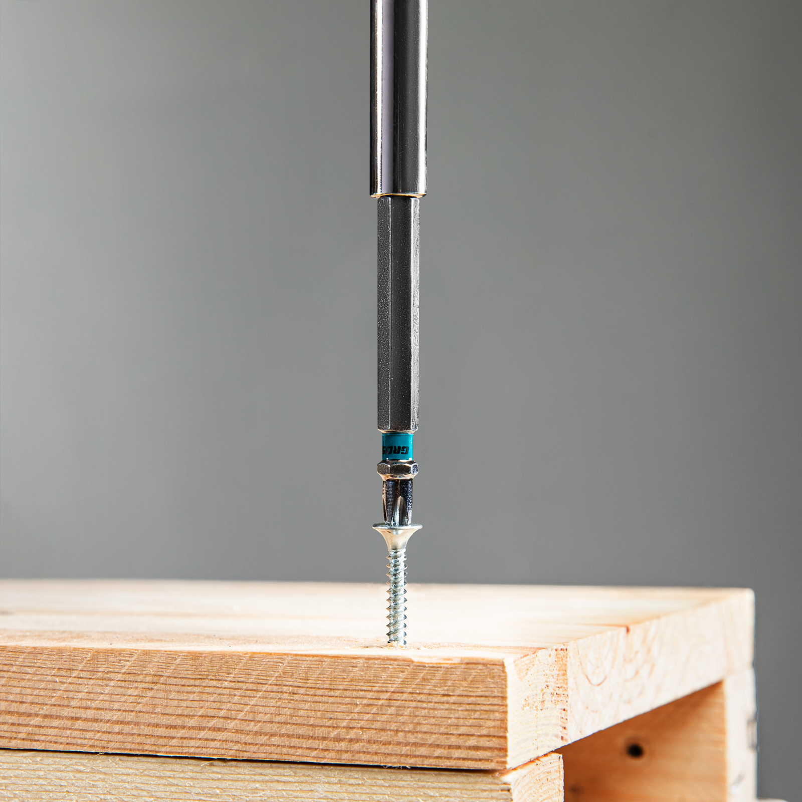 - Удобная эксплуатация — намагниченный шлиц облегчает работу и позволяет направлять шуруповерт с насаженным крепежом одной рукой, а другой придерживать закрепляемую деталь.