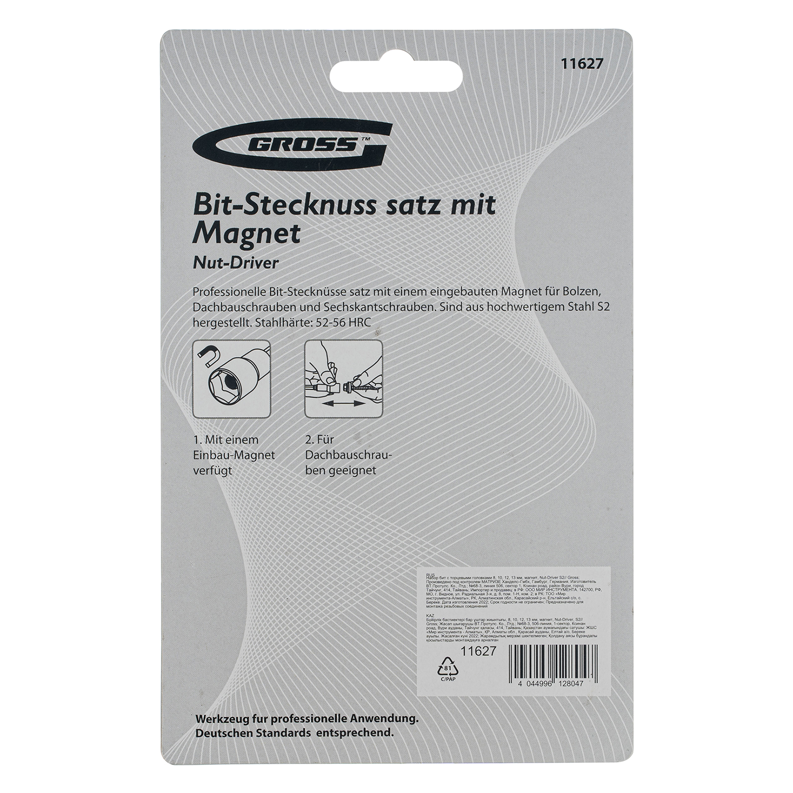 Набор бит с торцевыми головками Gross Nut-Driver 11627 включает 4 оснастки из стали S2 размером 8, 10, 12 и 13 мм, с магнитом, предназначенные для использования с шуруповертами. Применяется для монтажа и демонтажа болтов, шурупов и кровельных саморезов, имеющих шестигранную головку. Насадки выдерживают интенсивные нагрузки и сохраняют рабочие свойства даже при длительном использовании.