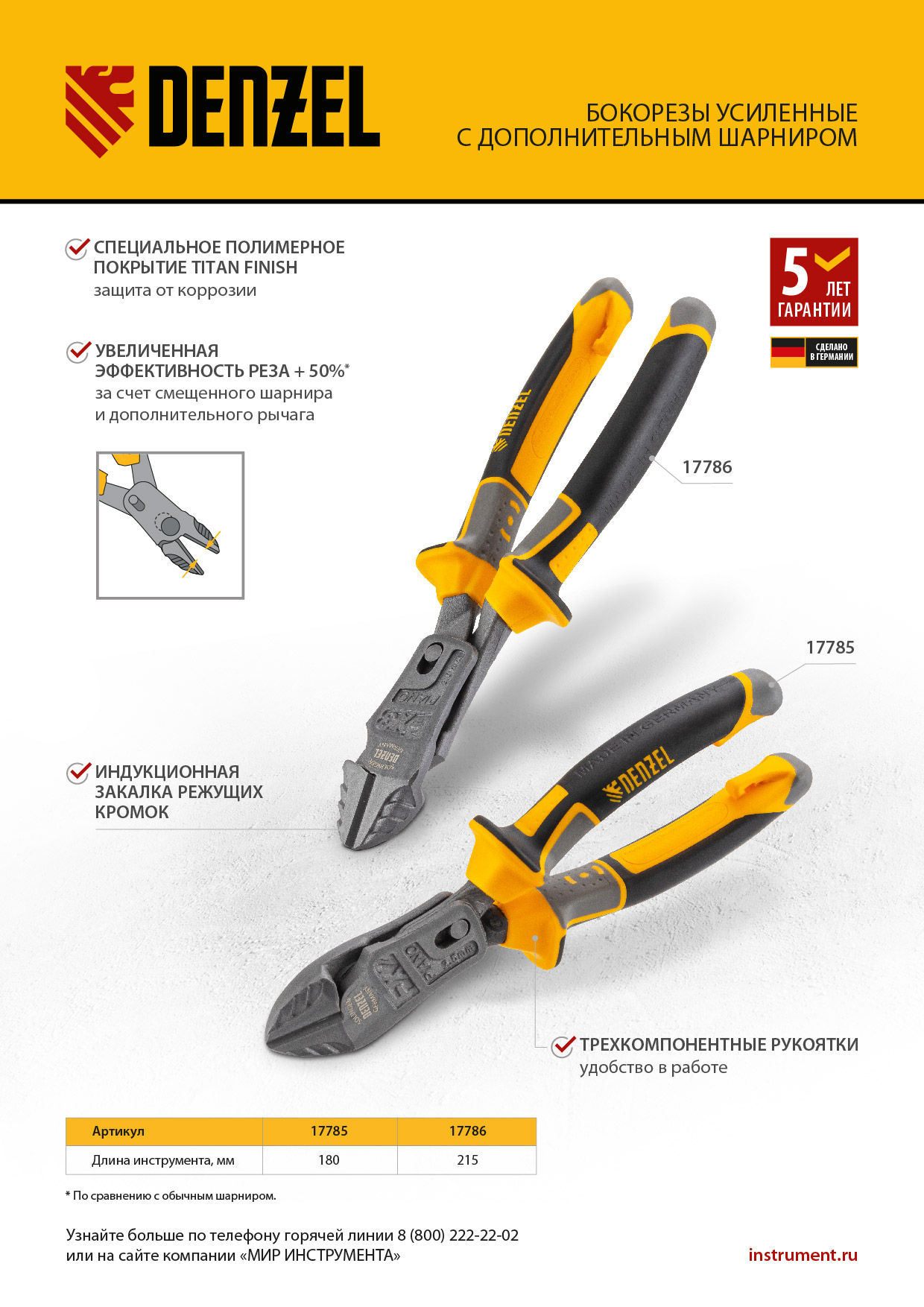 - Гарантия 5 лет — высокое качество инструмента подтверждено производителем.