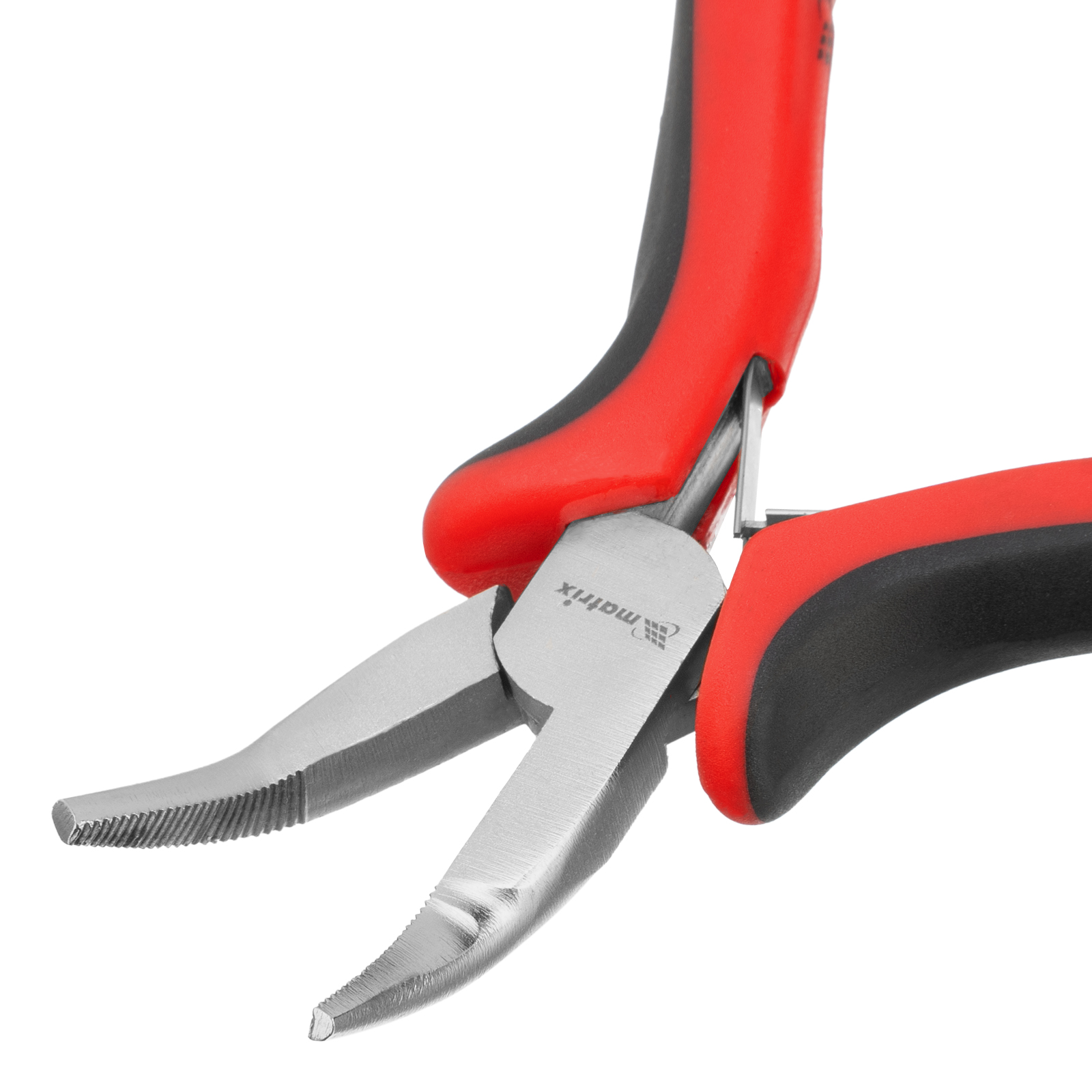 Изогнутые никелированные длинногубцы Matrix Mini 17812 длиной 130 мм, с авторазжимом и двухкомпонентными рукоятками, пригодятся во время монтажных/демонтажных и ремонтных работ, например, починки бытовой техники. С их помощью удобно захватывать и удерживать мелкие детали, проволоку и провода. Мини-длинногубцы позволяют выполнять операции, требующие высокой точности и аккуратности. Изогнутые губки облегчают работу в труднодоступных местах.