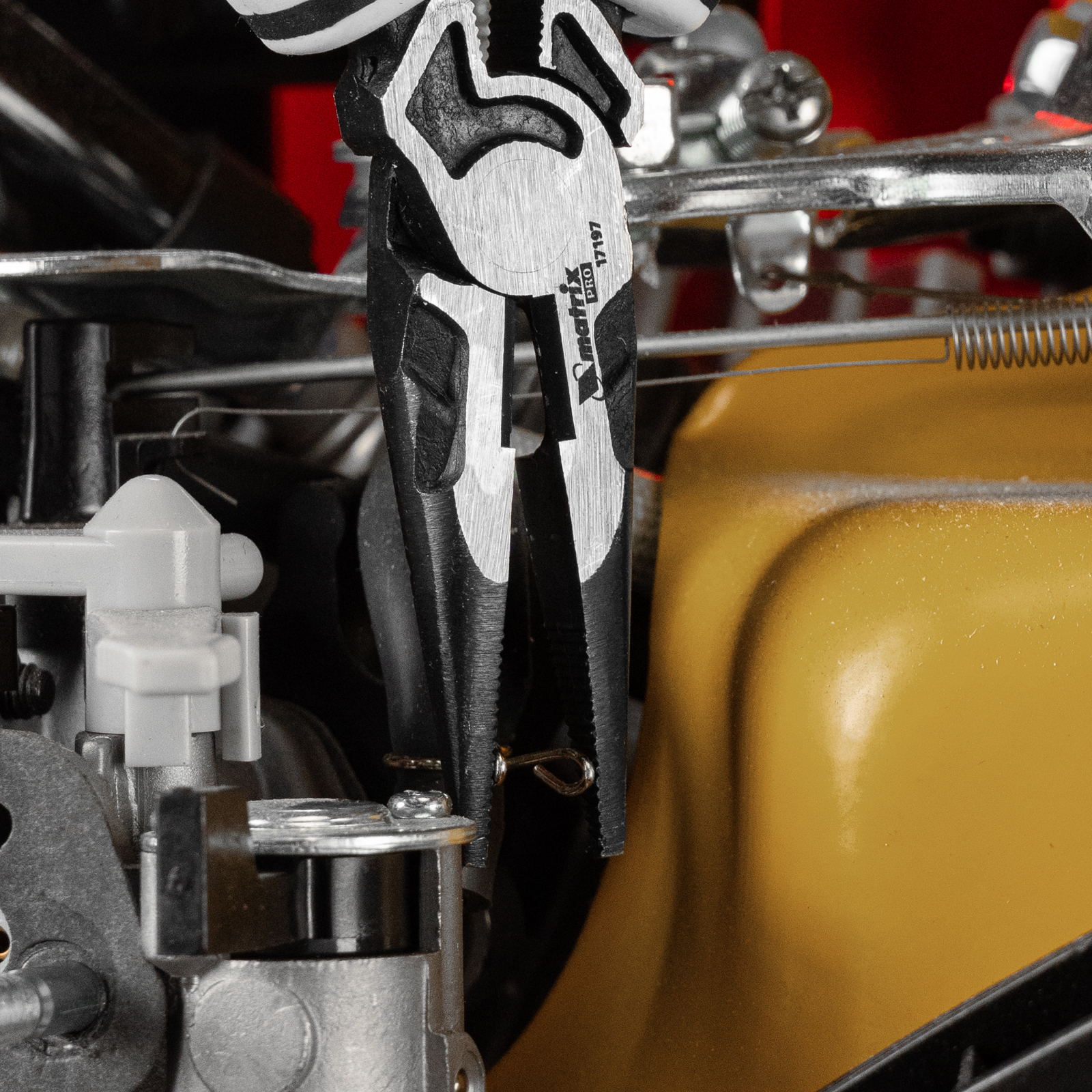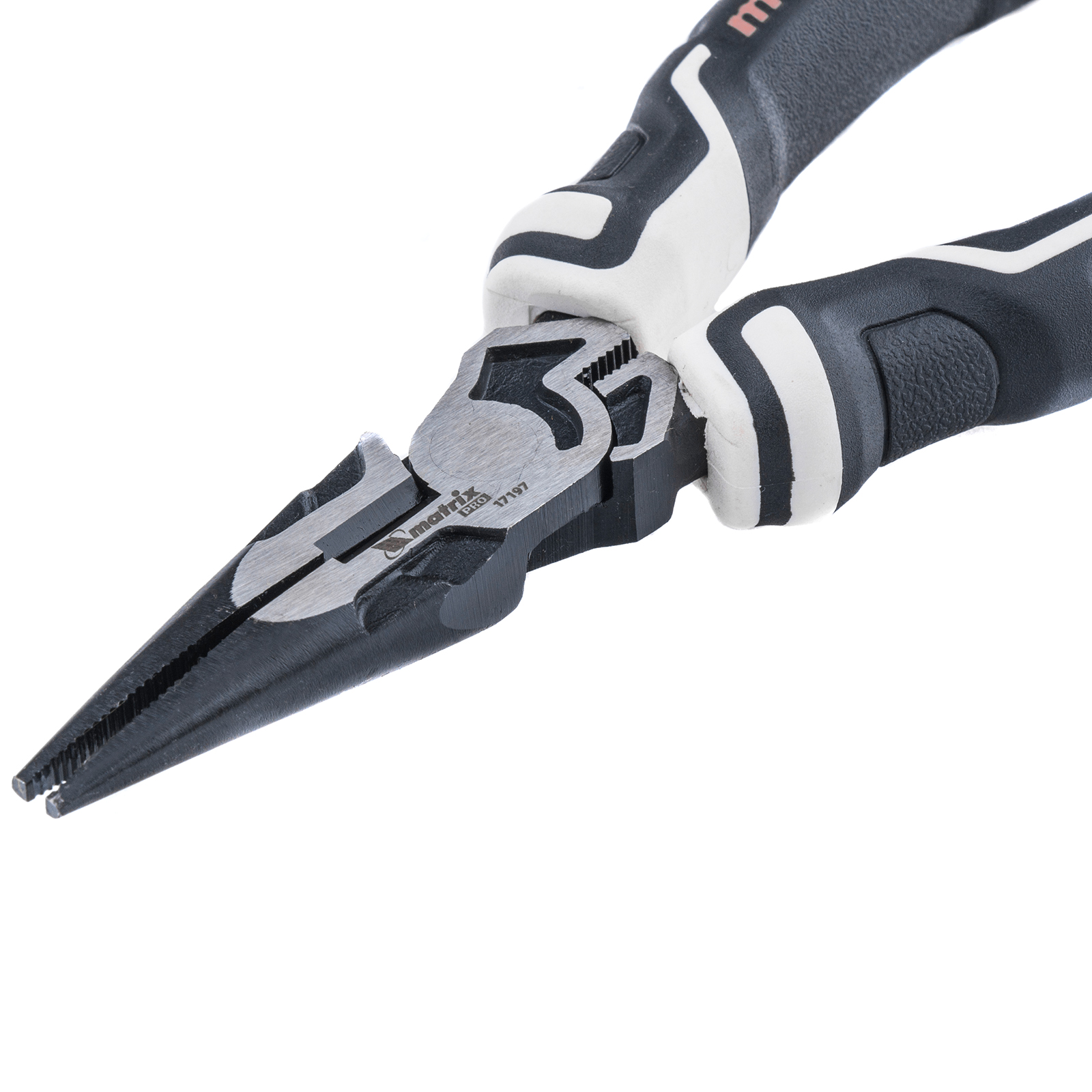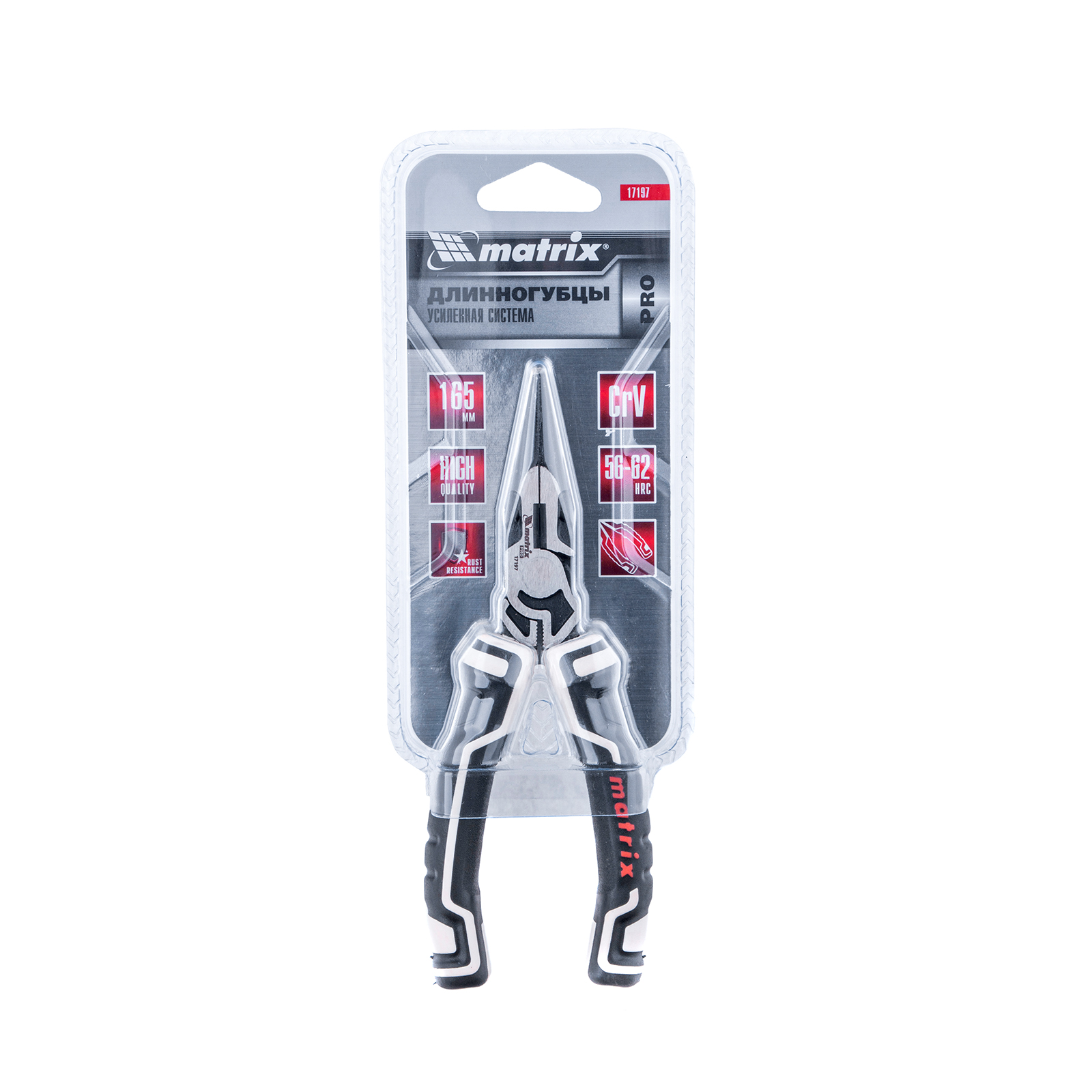 Прямые длинногубцы Matrix PRO 17197 с усиленной системой, длиной 165 мм, станут незаменимым помощником профессиональным мастерам. Пригодятся при проведении широкого спектра слесарных, монтажных и ремонтных работ. За счет удлиненных тонких губок инструмент легко проникает в труднодоступные места, позволяет захватить и удержать мелкие детали, перекусить прутки, проволоку, провод и т.д.