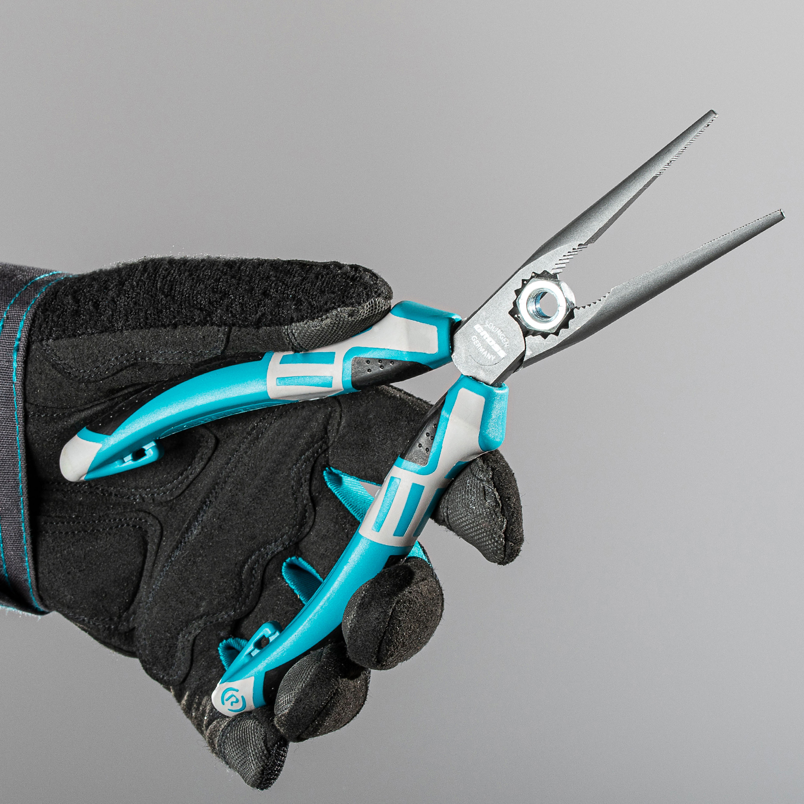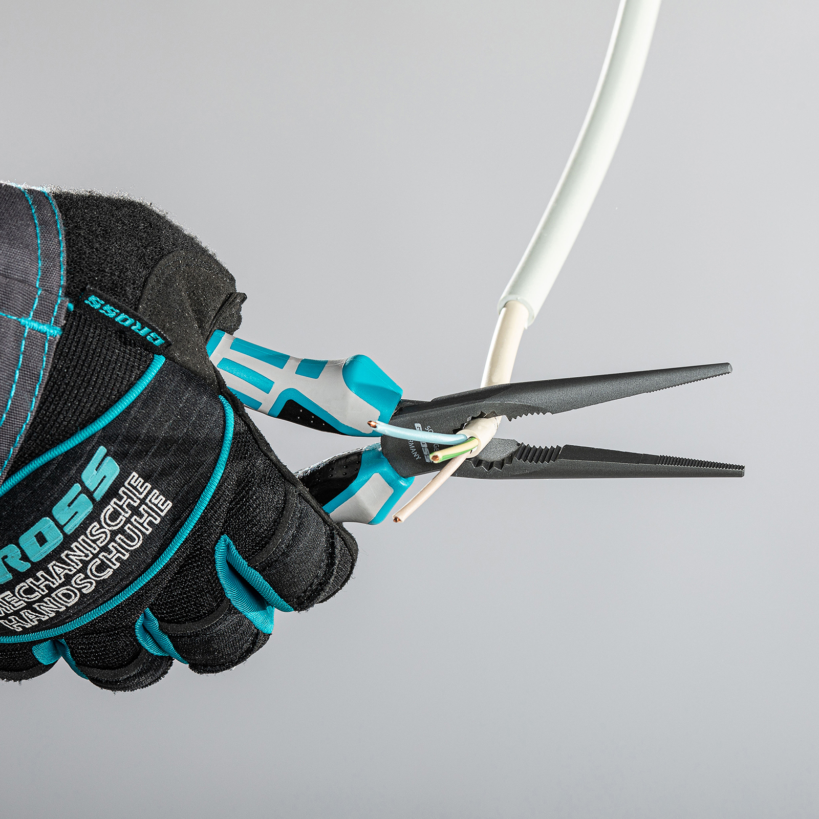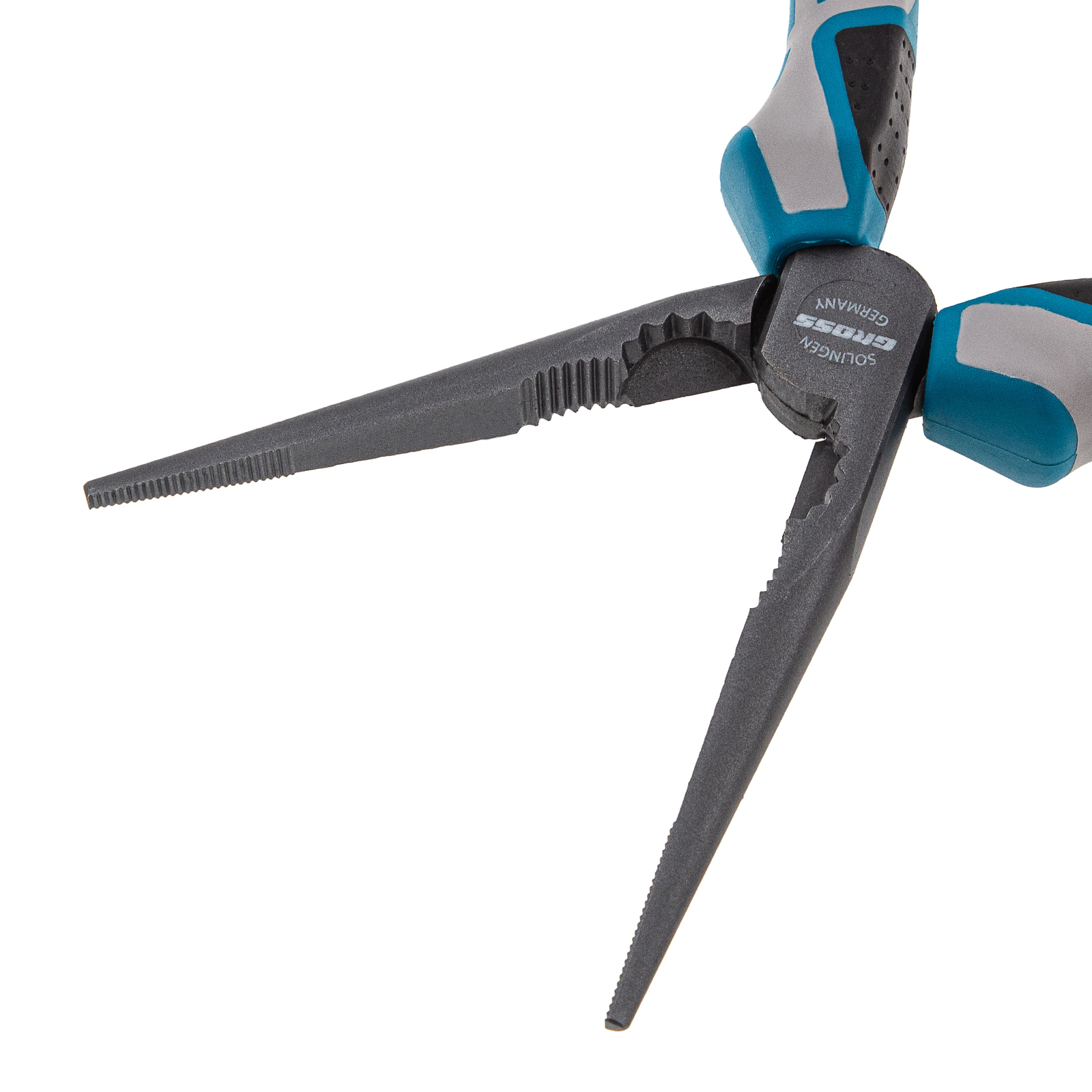Прямые длинногубцы Gross 17171 длиной 205 мм, с трехкомпонентными рукоятками, используются при работе с мелкими деталями и крепежами. Они позволяют удерживать, сгибать и перекусывать провода или проволоку. Оптимальны для манипуляций в ограниченном пространстве. У основания губок имеются специальные грани, позволяющие работать с гайками М6-М8. Ровные насечки на зажимных частях обеспечивают надежный захват и удержание деталей. Длинногубцы будут полезны при проведении электромонтажных работ, ремонте оргтехники, обслуживании автомобиля, а также в быту.