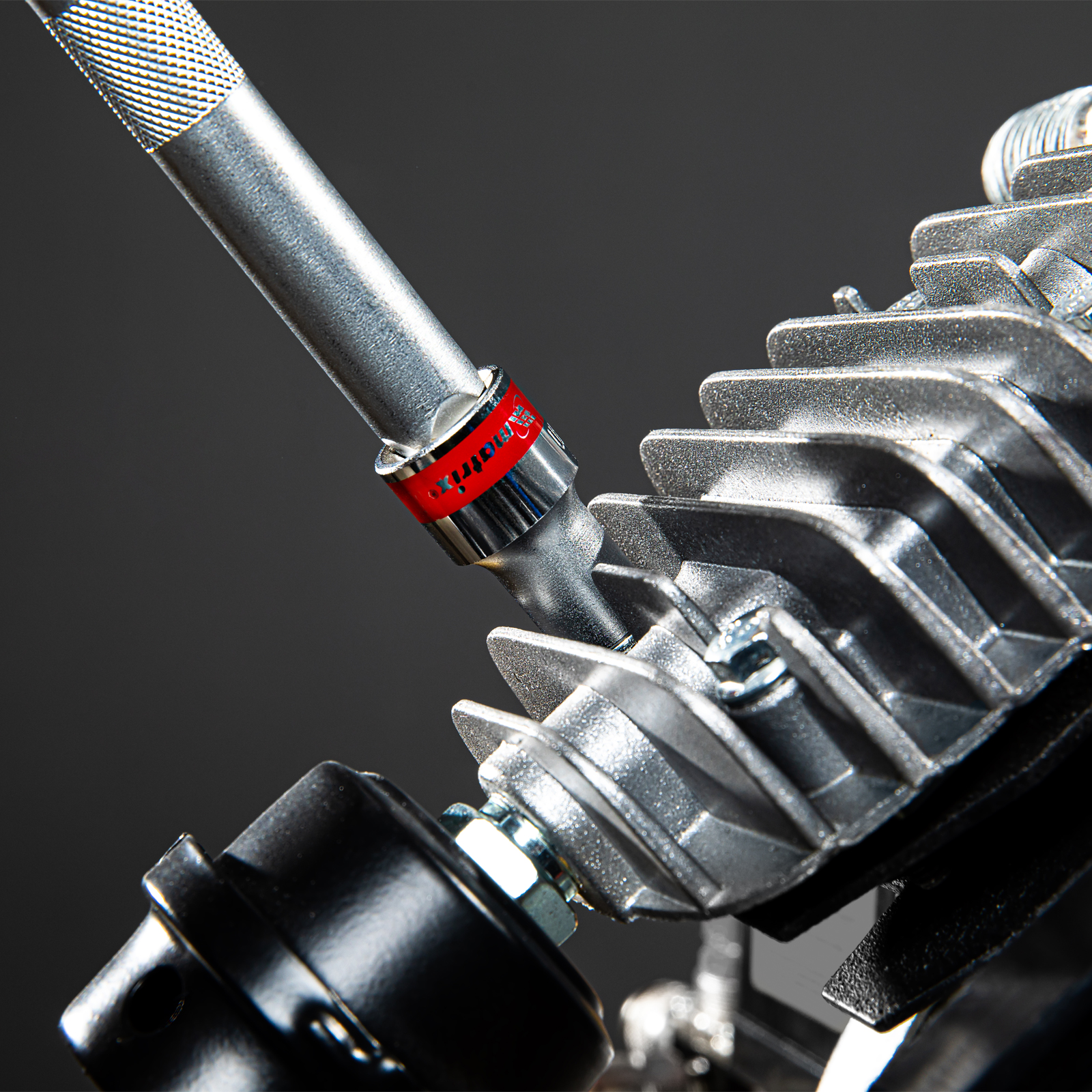 - Быстрый поиск насадки среди других инструментов — торцевая головка маркирована красной полосой, на корпус нанесено обозначение типоразмера.