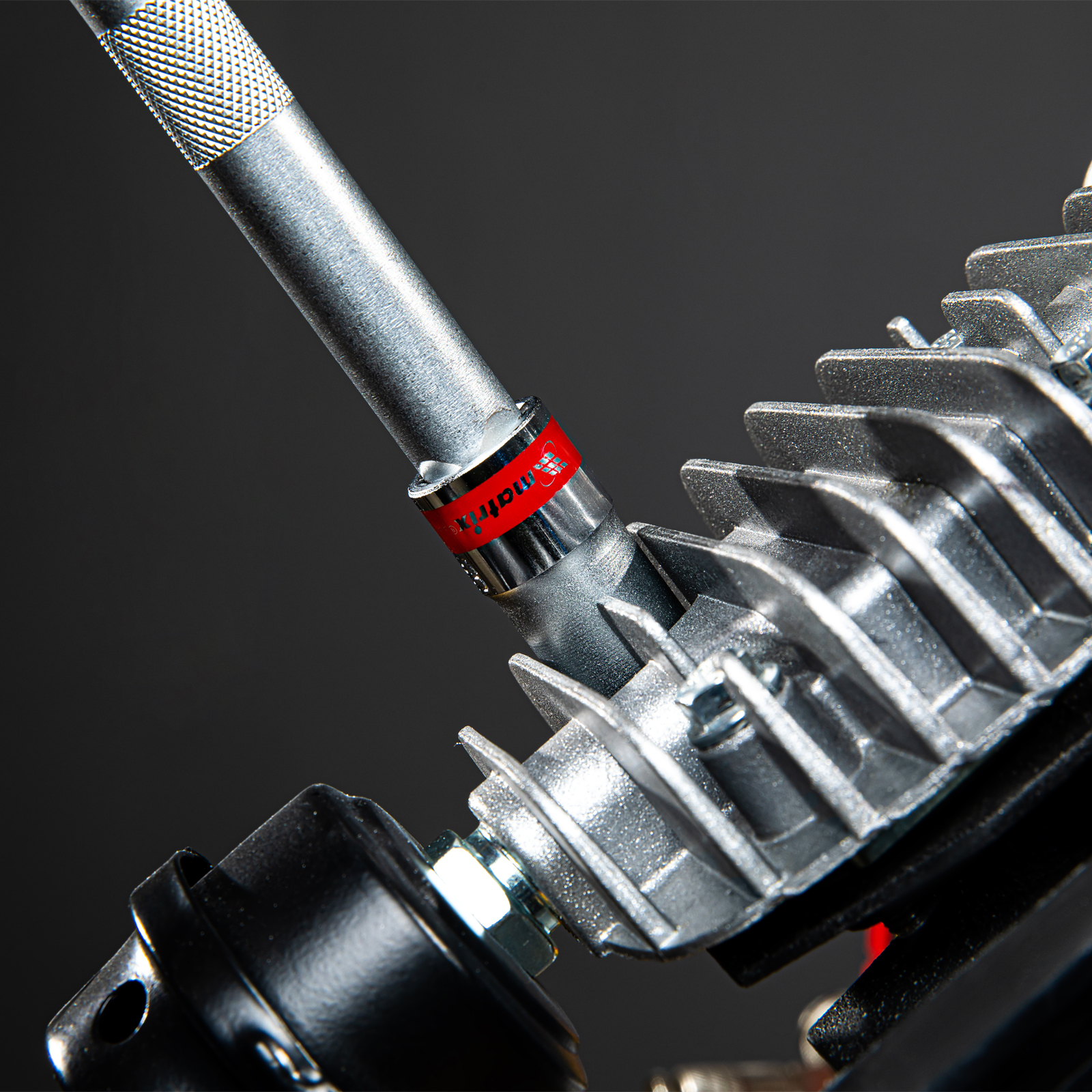 - Быстрый поиск среди других насадок — торцевая головка маркирована красной полосой, на корпусе указан типоразмер.