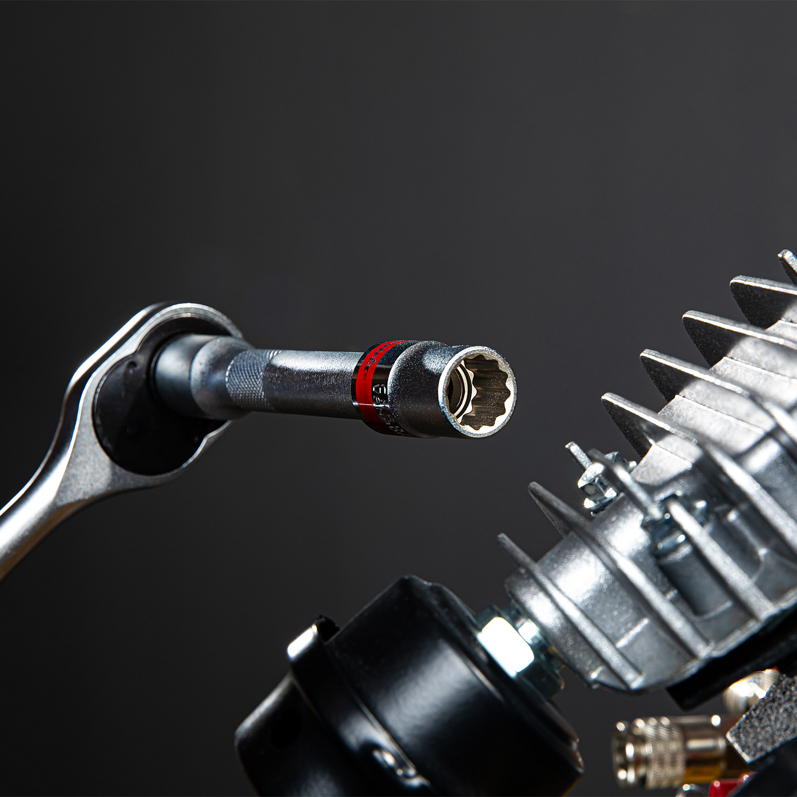 - Быстрый поиск среди других насадок — торцевая головка маркирована красной полосой, на корпусе указан типоразмер.