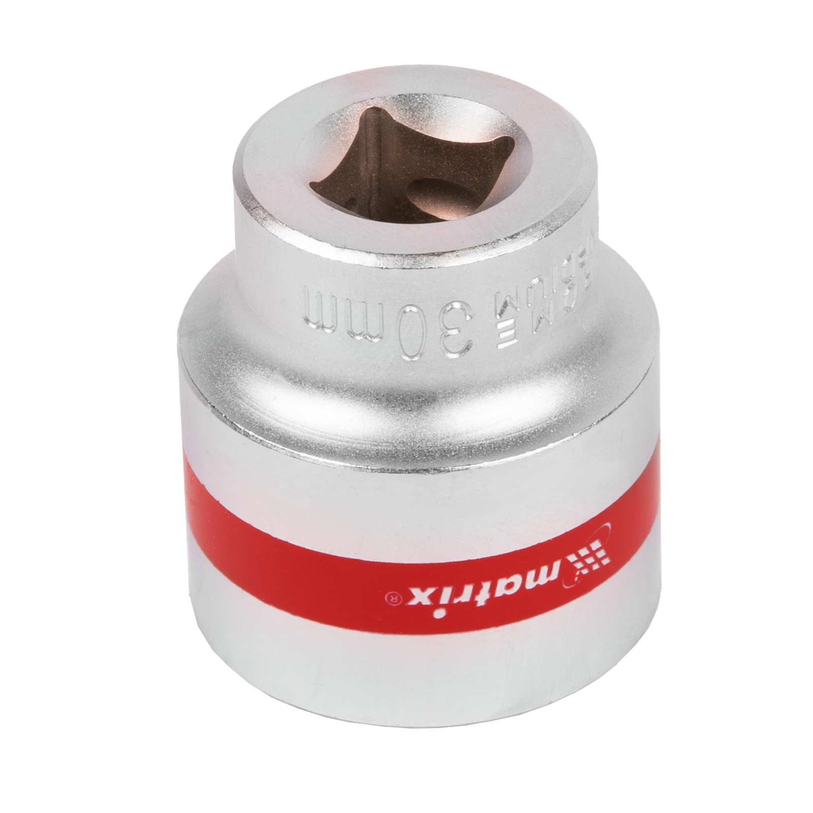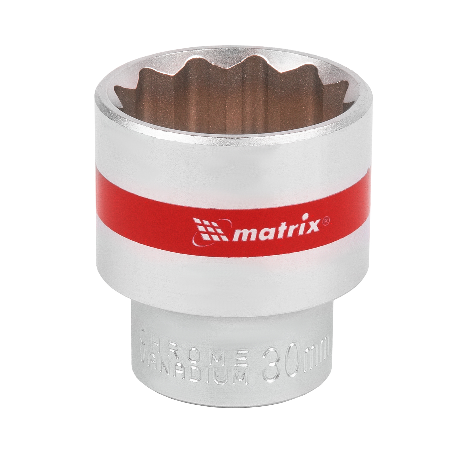 Хромированная торцевая головка Matrix 13697 из стали CrV, размером 30 мм, с 12-гранным профилем и посадочным квадратом 1/2" — оснастка для слесарного инструмента, предназначенная для монтажа и демонтажа резьбовых соединений. 12-гранный профиль обеспечивает максимальный контакт с гранями головки крепежа, что уменьшает ее деформацию при высоких нагрузках. Угол поворота составляет 30°, что облегчает работу в труднодоступных местах. Насадка пригодится для проведения монтажных и ремонтных работ дома, на даче или в гараже.