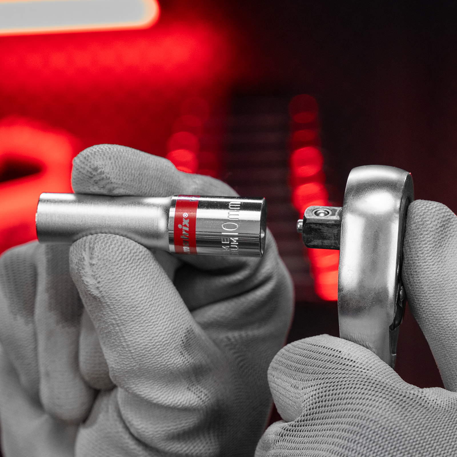 - Быстрый поиск нужной насадки — торцевые головки маркированы ярко-красными полосками.