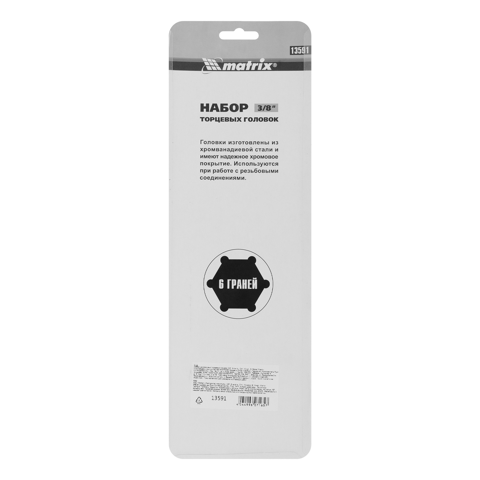 Набор удлиненных торцевых головок Matrix 13591 включает в себя 10 шестигранных насадок 8-19 мм, из стали CrV, с присоединительным квадратом 3/8", предназначенных для работы с резьбовыми соединениями. Торцевые головки с увеличенной длиной применяются для закручивания и откручивания крепежа в труднодоступных местах, а также для извлечения свечей зажигания. Набор востребован у автослесарей, сантехников, а также будет полезен в бытовой сфере.