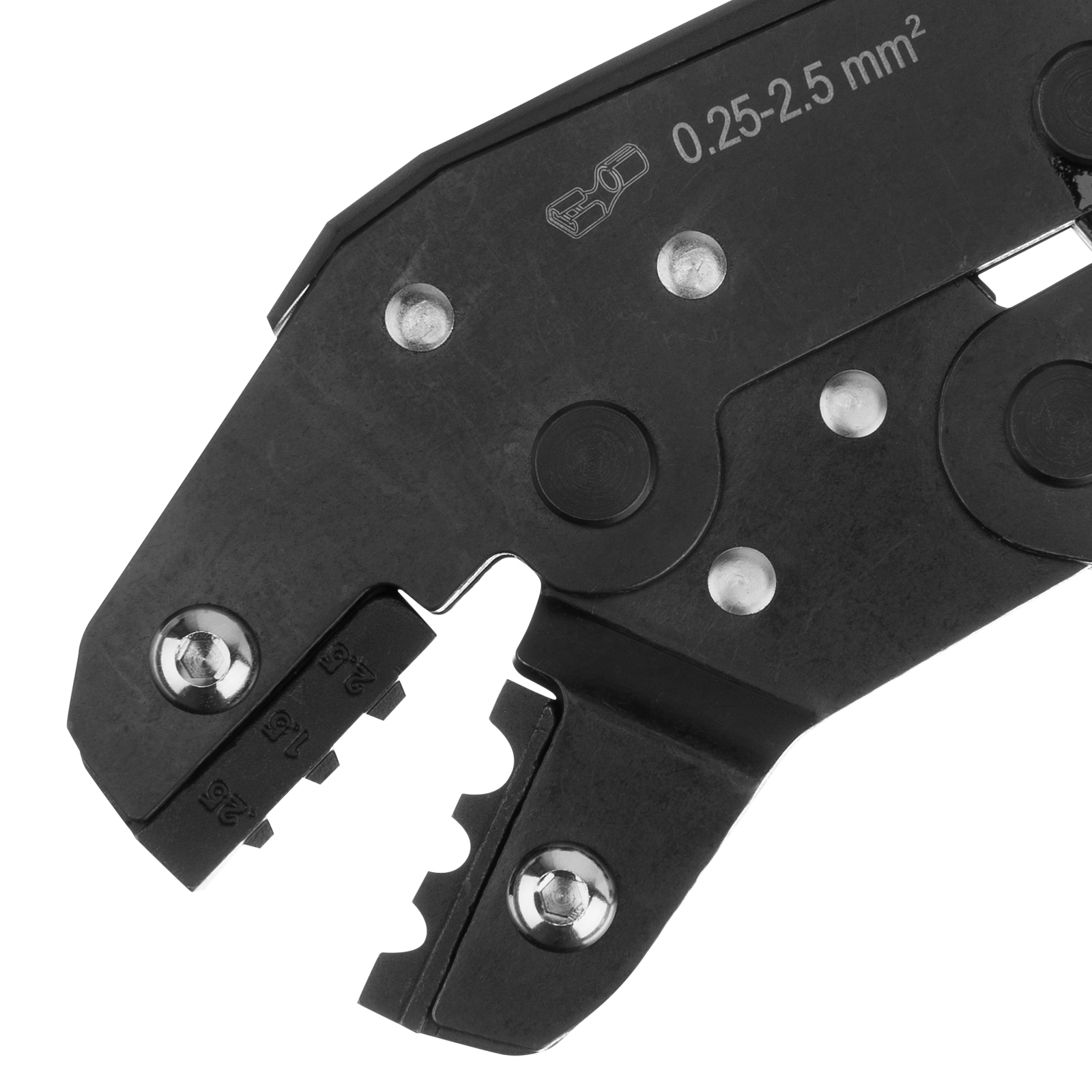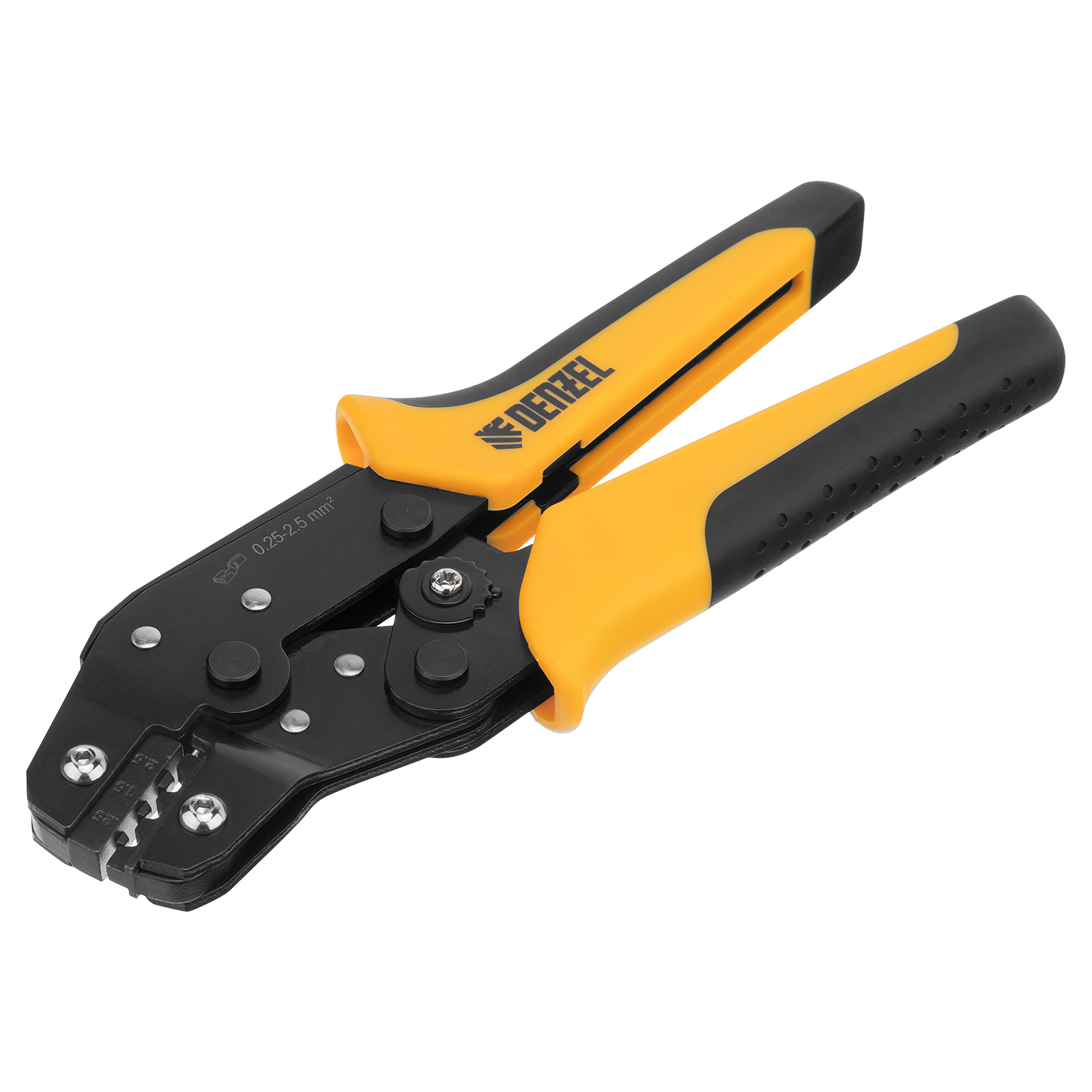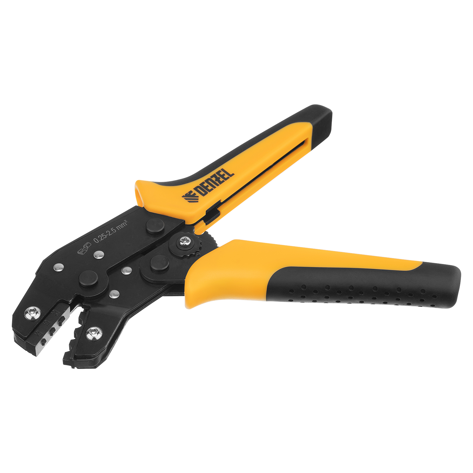 Клещи Denzel 17745 предназначены для обжима неизолированных наконечников кольцевых НК и вилочных НВ, разъемов плоских РП сечением 0,25-2,5 мм². Инструмент пригодится частным и профессиональным мастерам при проведении электромонтажных работ.