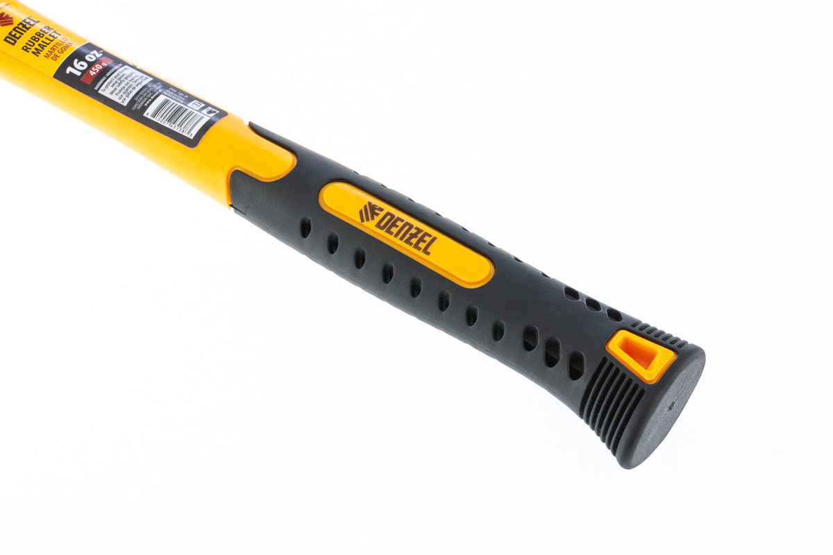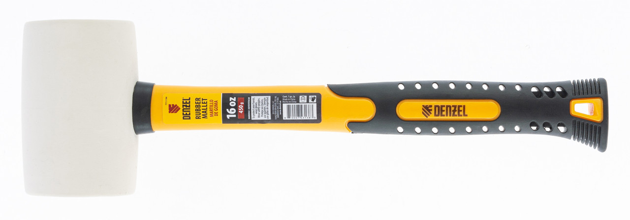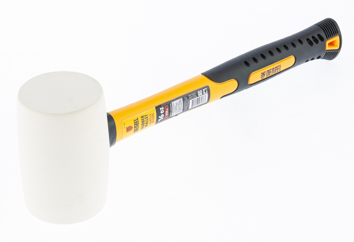 Резиновая киянка Denzel из белой резины с фибергласовой рукояткой,16 oz(450 г), применяется при проведении монтажных, сборочных и кузовных работ, укладке плитки. Резиновый боек обладает высокими амортизирующими свойствами.Боек изготовлен из белой резины и не оставляет следов, поэтому подходит для работы со светлыми материалами. Рукоятка обладает высоким рабочим ресурсом, т.к. выполнена из фибергласа с обрезиненным покрытием который обеспечивает надежный хват без проскальзывания. Киянка имеет высокий показатель прочности, устойчива к воздействию внешней агрессивной среды и хорошо поглащает вибрацию, поэтому подходит для профессионального применения.