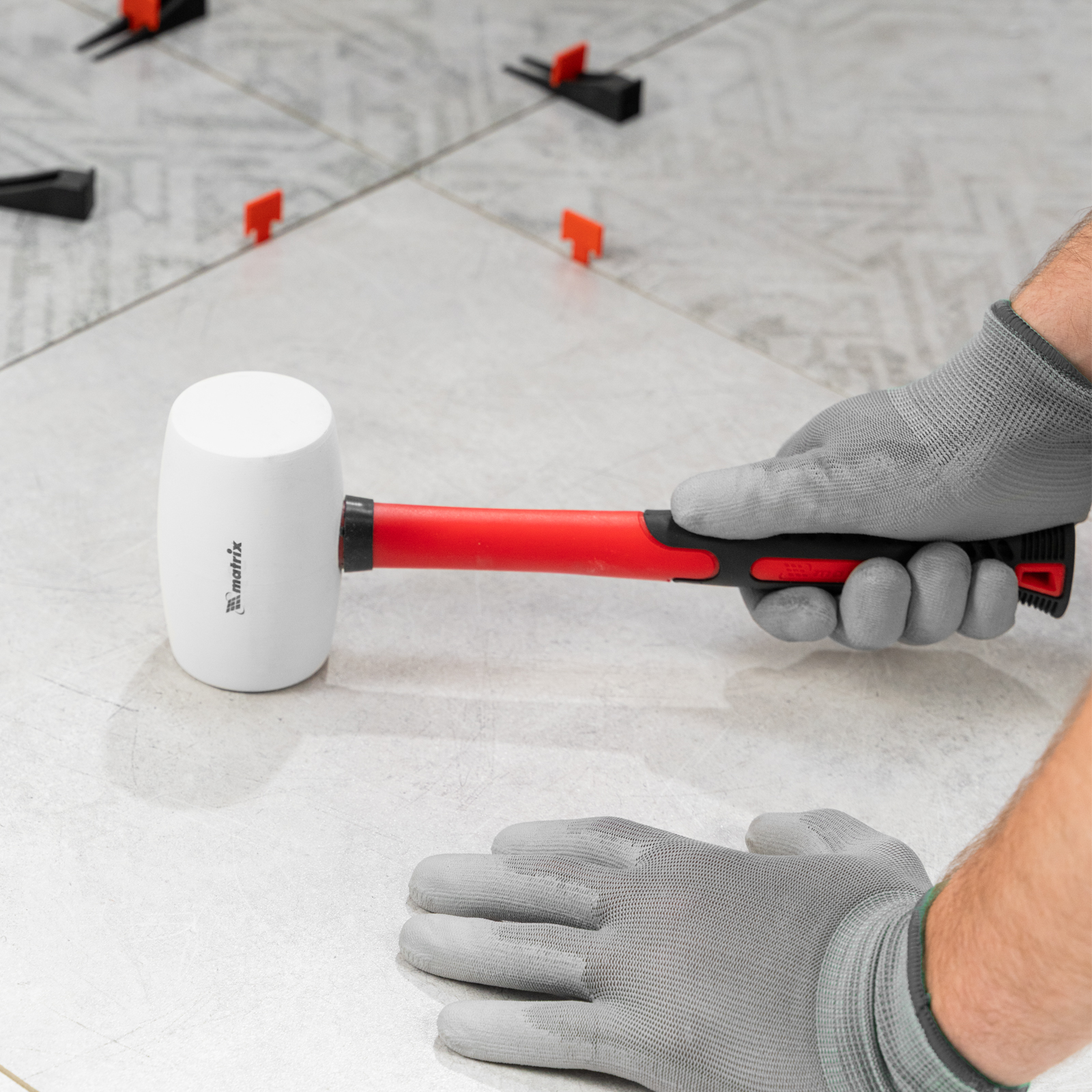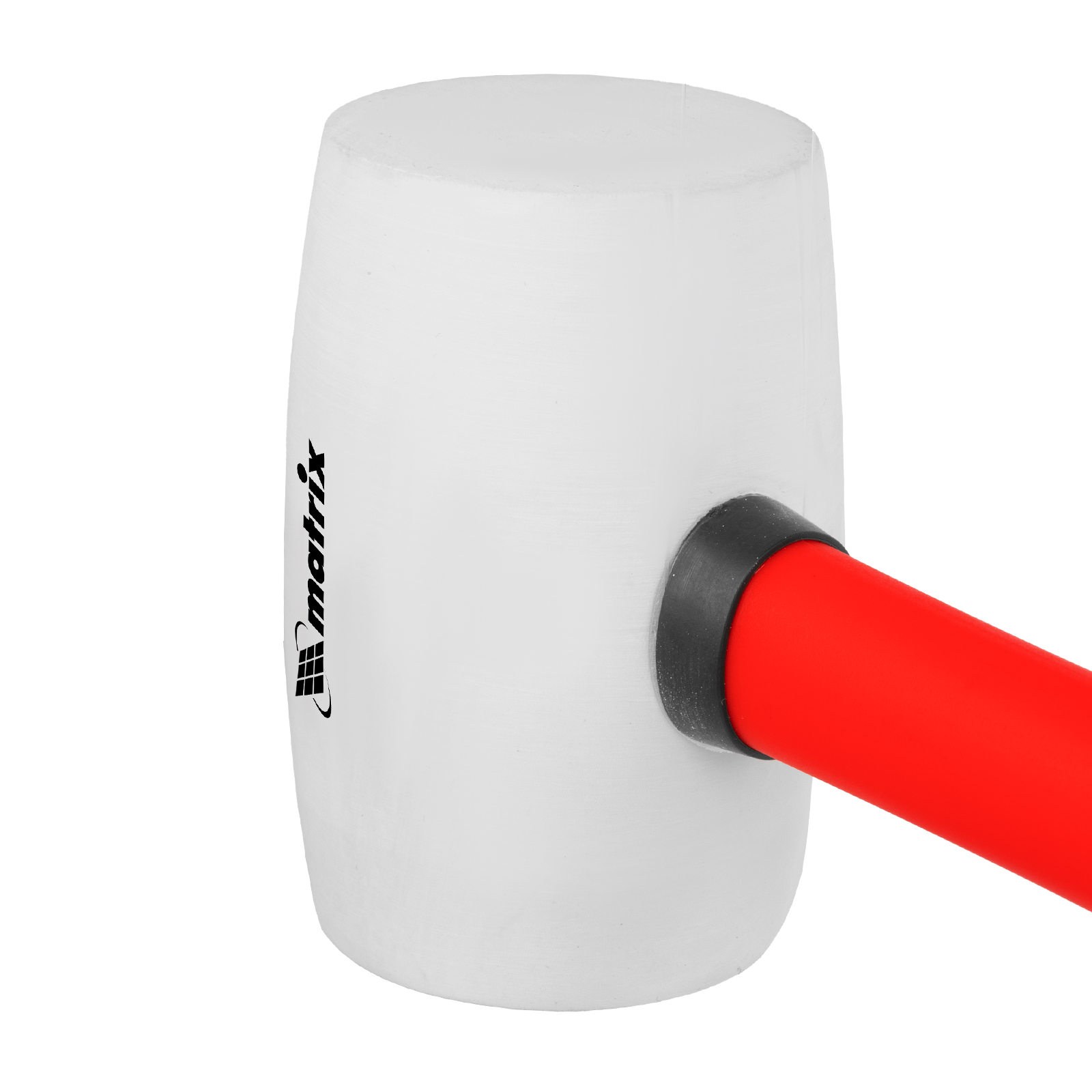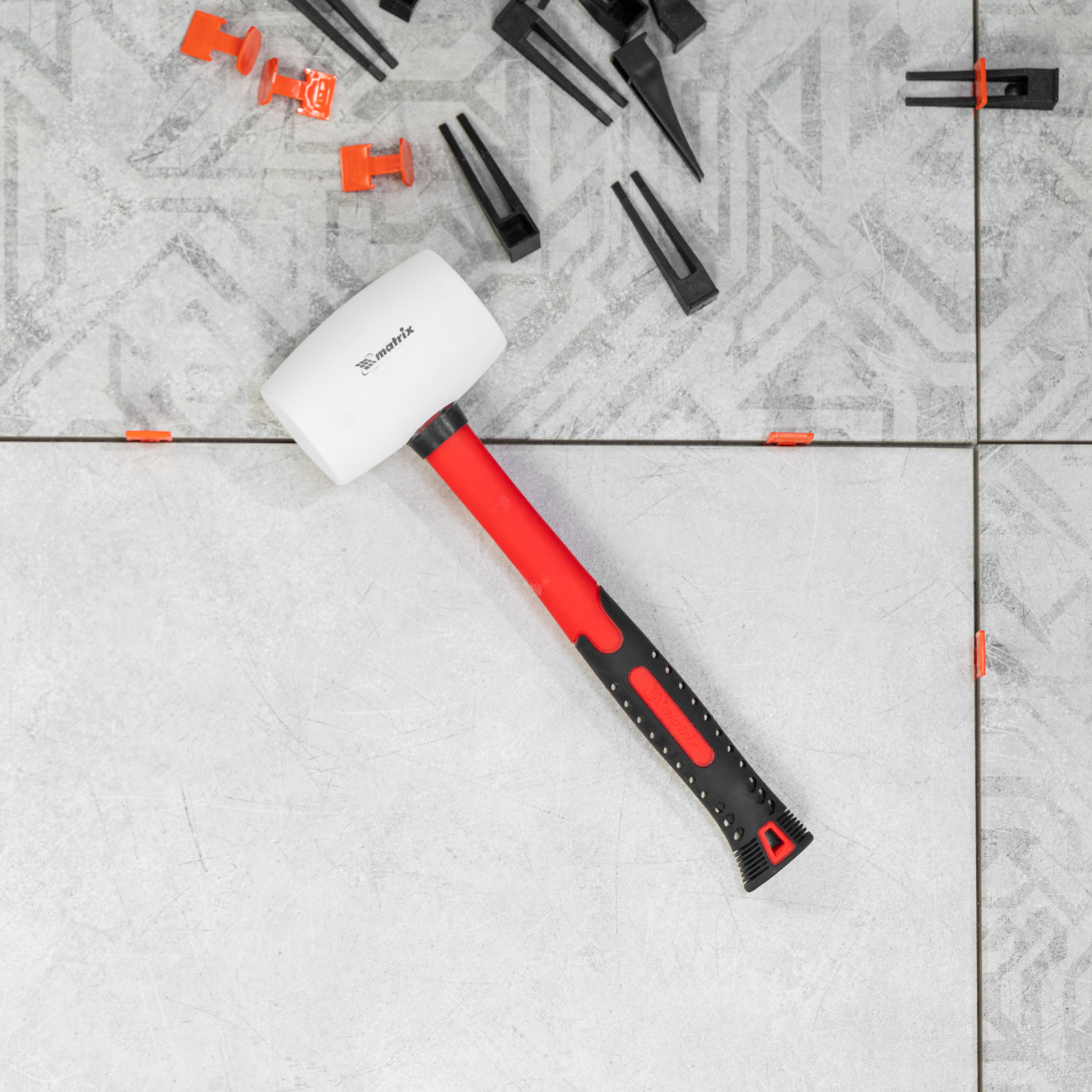 Резиновая киянка Matrix 11196 из белой резины, с фибергласовой рукояткой и бойком весом 450 г, применяется при проведении монтажных, сборочных и кузовных работ, для укладки плитки. Инструмент обладает высоким показателем прочности, стойкостью к воздействию внешней агрессивной среды и хорошим вибропоглощением, поэтому подходит для профессионального применения.
