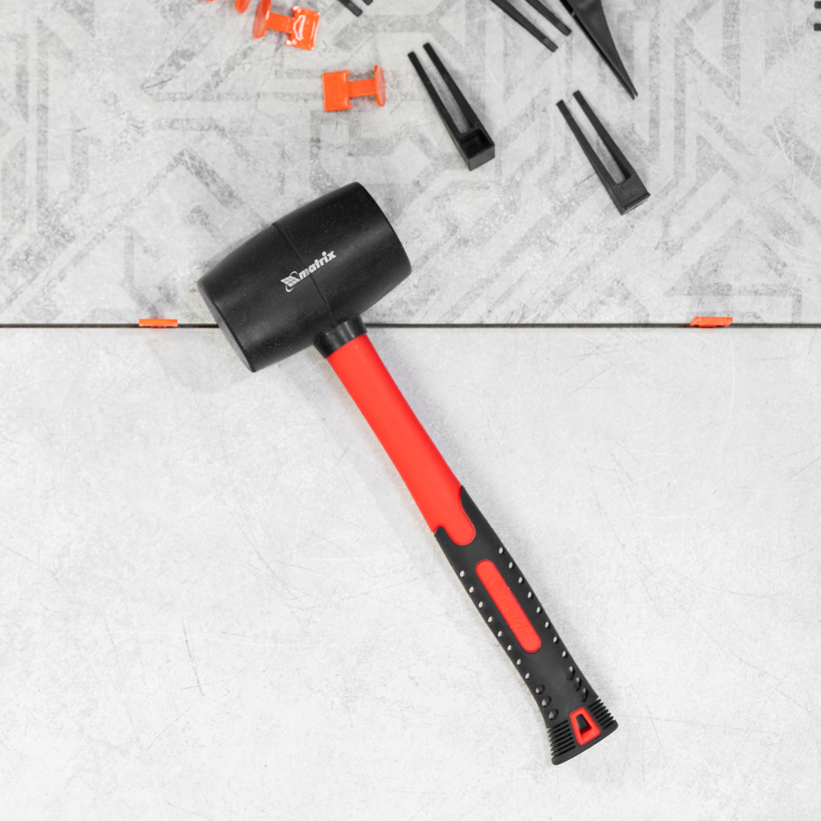 Резиновая киянка Matrix 11185 из черной резины, с фибергласовой рукояткой и бойком весом 450 г, применяется при проведении монтажных, сборочных и кузовных работ, для укладки плитки. Инструмент обладает высоким показателем прочности, стойкостью к воздействию внешней агрессивной среды и хорошим вибропоглощением, поэтому подходит для профессионального применения.