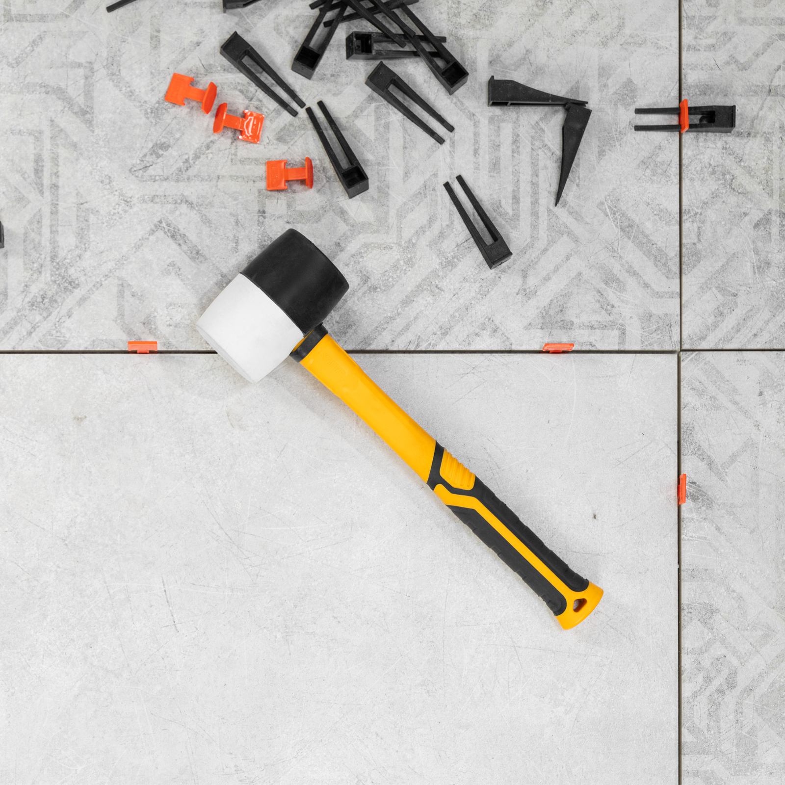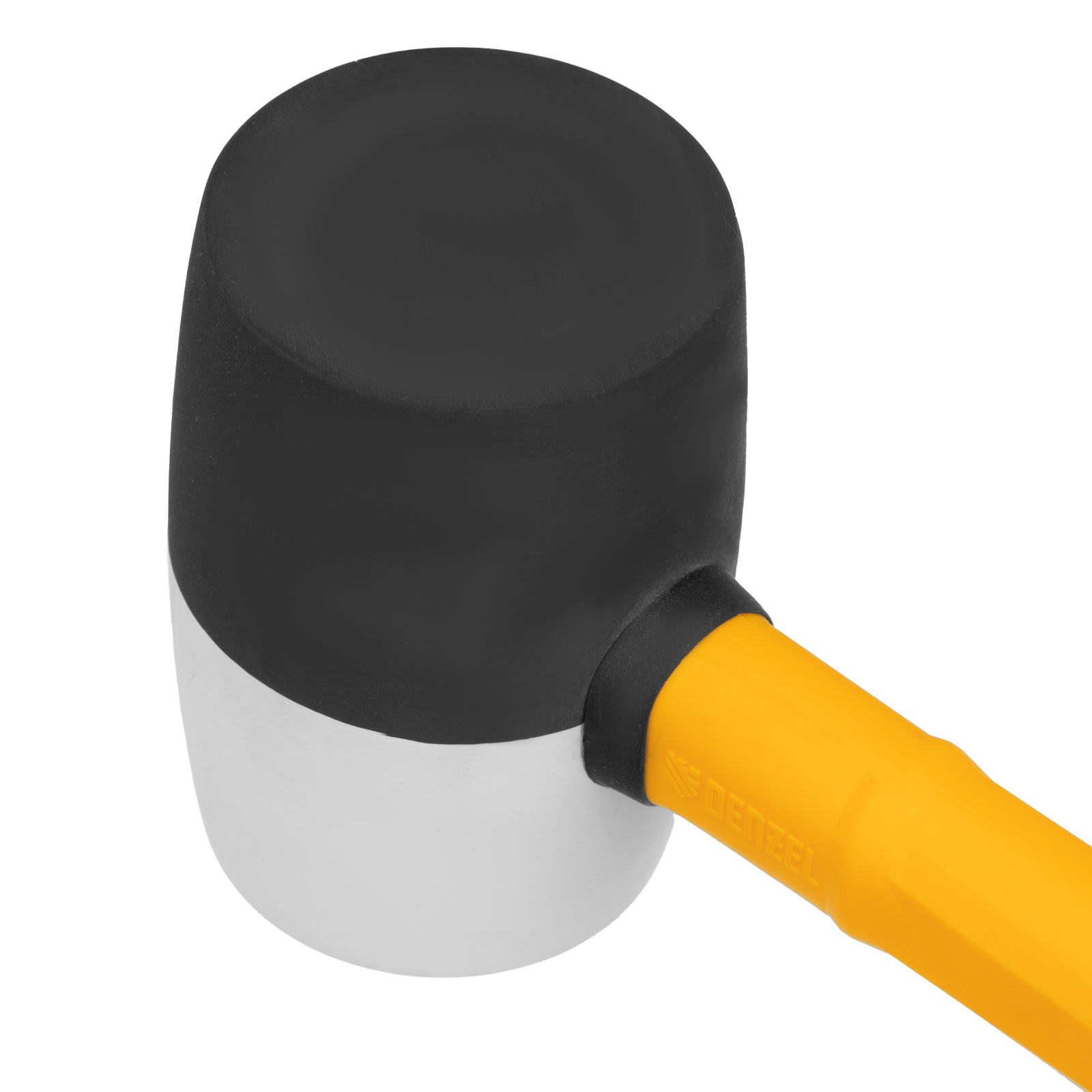 Резиновая киянка Denzel 11102 с бойком из черно-белой резины весом 450 г и фибергласовой рукояткой с TPR-покрытием, применяется во время монтажных, сборочных и кузовных работ, укладки плитки. Резиновый боек с высокими амортизирующими свойствами оптимален для работы с чувствительными к давлению материалами. Инструмент характеризуется высокой прочностью и стойкостью к агрессивному воздействию, подходит для профессионального использования.