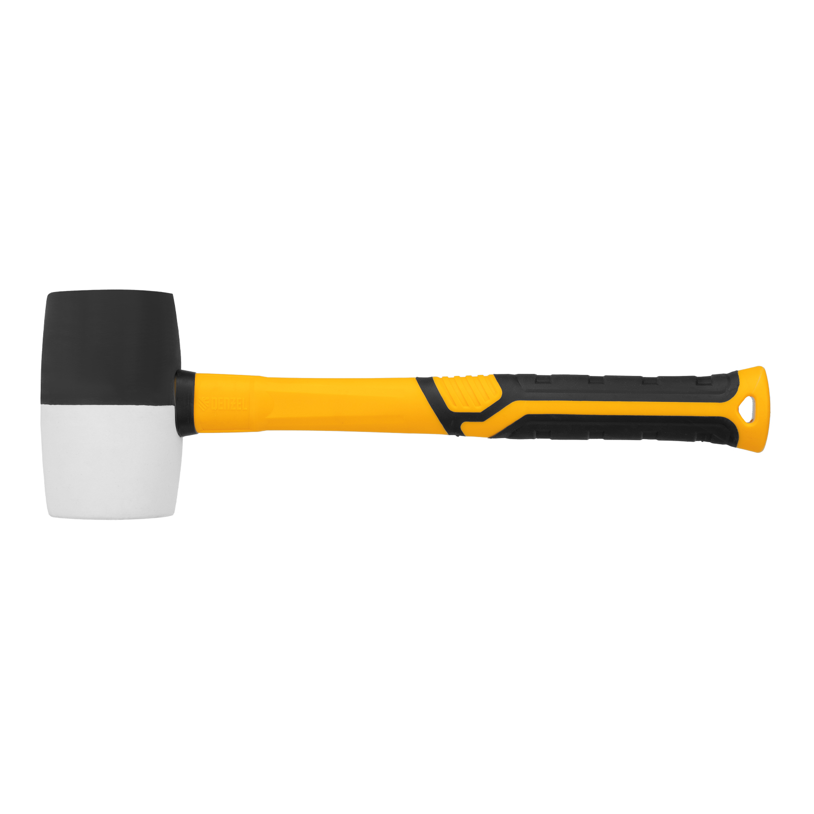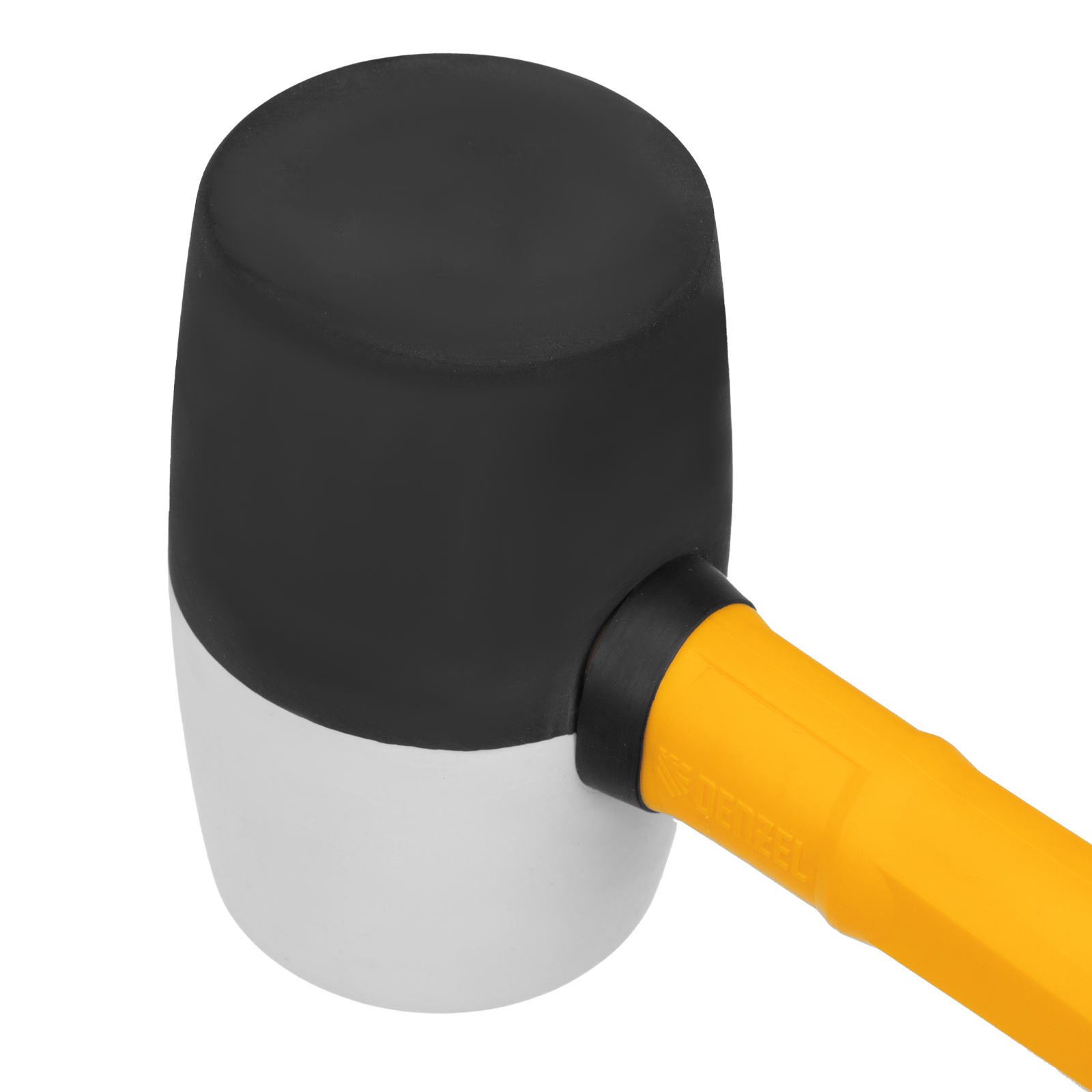 Резиновая киянка Denzel 11103 с бойком из черно-белой резины весом 680 г и фибергласовой рукояткой с TPR-покрытием, применяется во время монтажных, сборочных и кузовных работ, укладки плитки. Резиновый боек с высокими амортизирующими свойствами оптимален для работы с чувствительными к давлению материалами. Инструмент характеризуется высокой прочностью и стойкостью к агрессивному воздействию, подходит для профессионального использования.