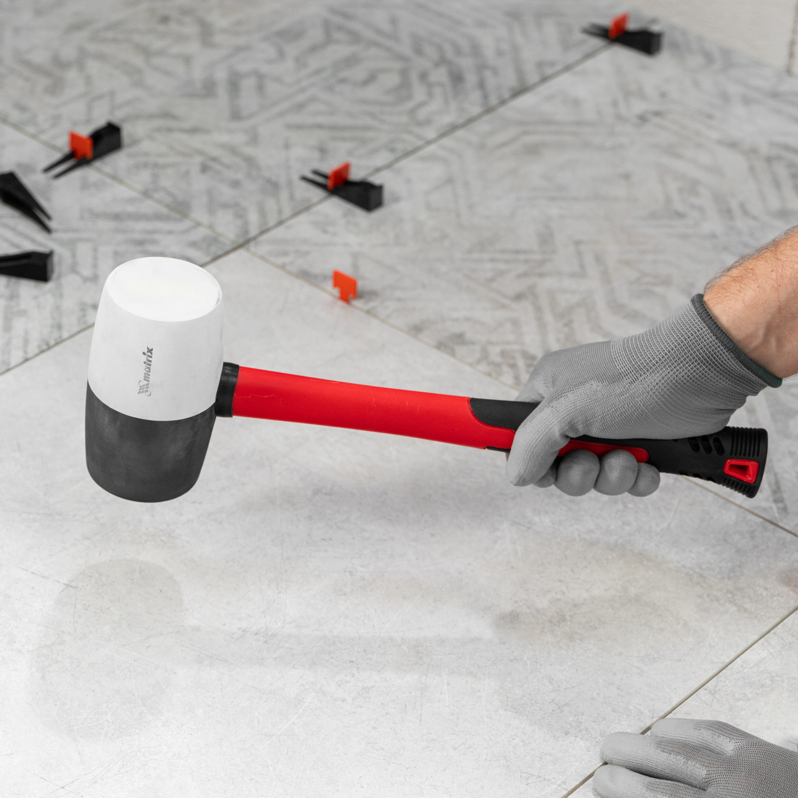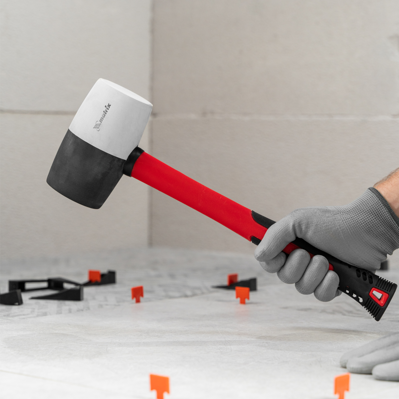 Резиновая киянка Matrix 11173 из черно-белой резины с фибергласовой рукояткой, 910 г, применяется при проведении монтажных, сборочных и кузовных работ, укладке плитки. Резиновый боек обладает высокими амортизирующими свойствами, что делает его оптимальным для работы с чувствительными к давлению материалами.