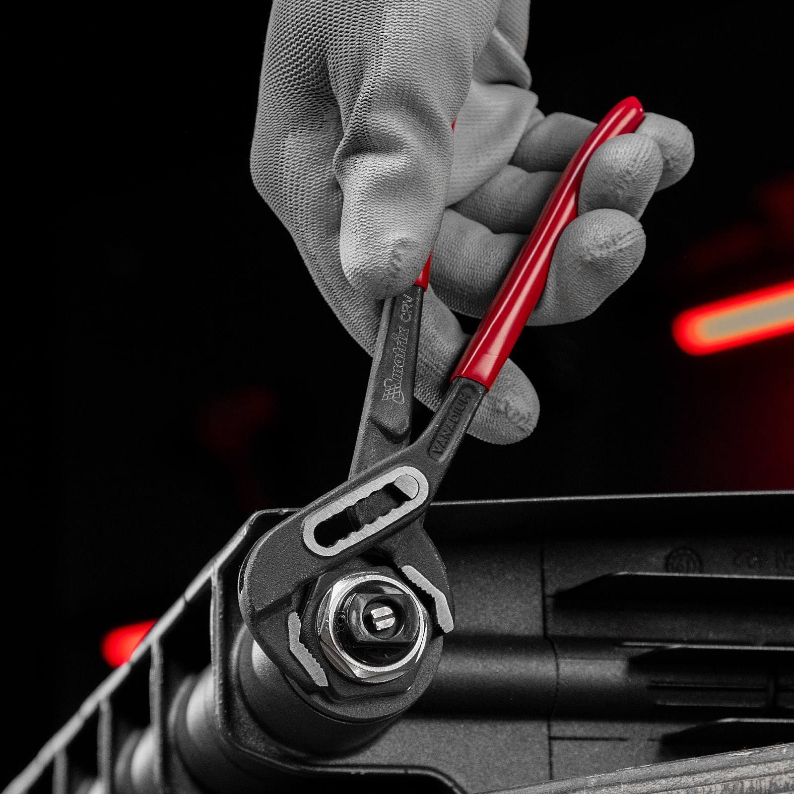Переставные клещи Matrix 17920 длиной 180 мм, выполненные из хромованадиевой стали, с обливными рукоятками, используются для проведения монтажных и слесарных работ. Универсальный инструмент заменяет ключи различных размеров и применяется для фиксации заготовок, откручивания гаек, зажима и удержания труб диаметром до 32 мм.