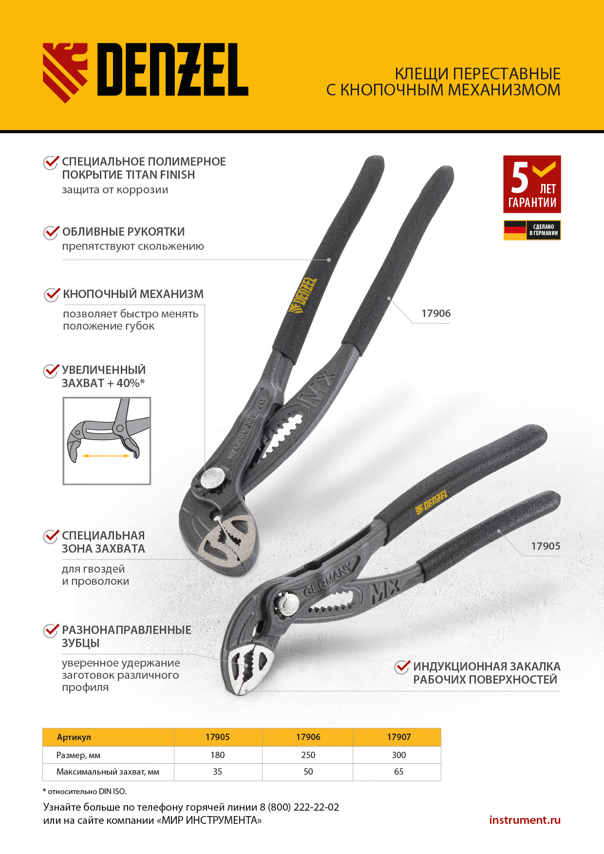 - Гарантия 5 лет — высокое качество инструмента подтверждено производителем.