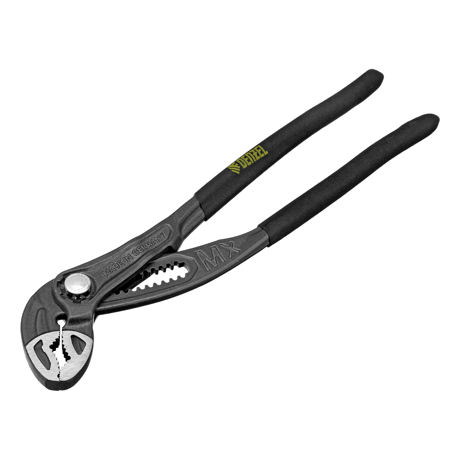 Переставные клещи Denzel 17906 длиной 250 мм, с обливными рукоятками и кнопочным механизмом, предназначены для фиксации и вращения деталей и заготовок различной формы. Подходят для захвата фитингов, труб, крепежных элементов. Инструмент удобен для работы в труднодоступных местах, используется при проведении ремонтных, монтажных, сантехнических работ.