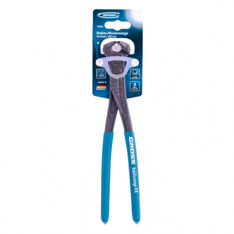 Усиленные торцевые клещи Gross 17994 длиной 230 мм, с обливными рукоятками, помогают извлекать гвозди и другие крепежные элементы. Благодаря усиленной конструкции они подходят для перекусывания мягкой проволоки диаметром до 4,2 мм и проволоки средней жесткости диаметром до 3,4 мм. Клещи предназначены для профессионального выполнения большого объема работ.