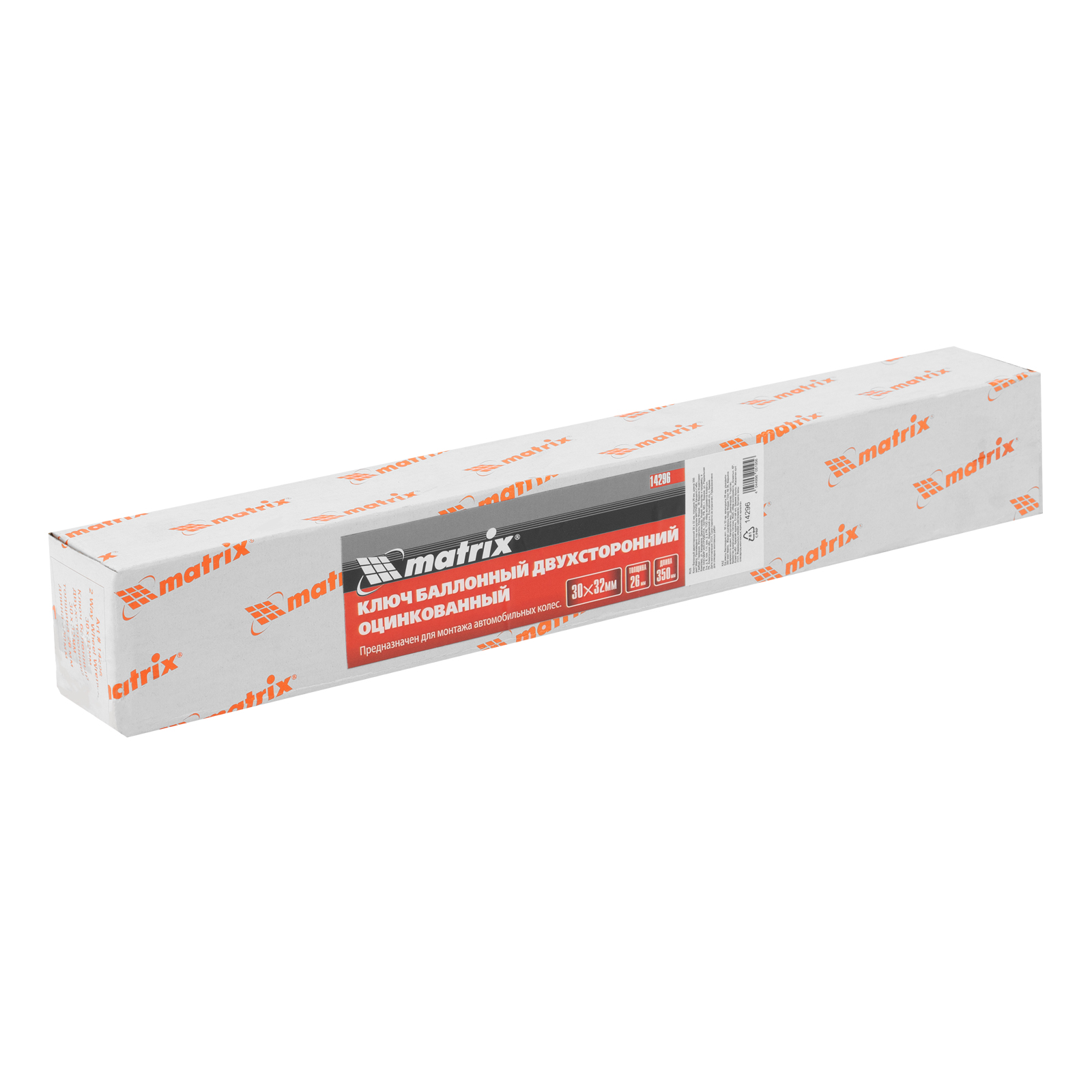 Двухсторонний баллонный ключ Matrix 14296, 30 х 32 мм, толщиной 26 мм и длиной 350 мм, используется для шиномонтажных работ на грузовом транспорте и автобусах. Две несъемные торцевые шестигранные головки подходят под крепеж 30 и 32 мм. Инструмент применяется на станциях техобслуживания.