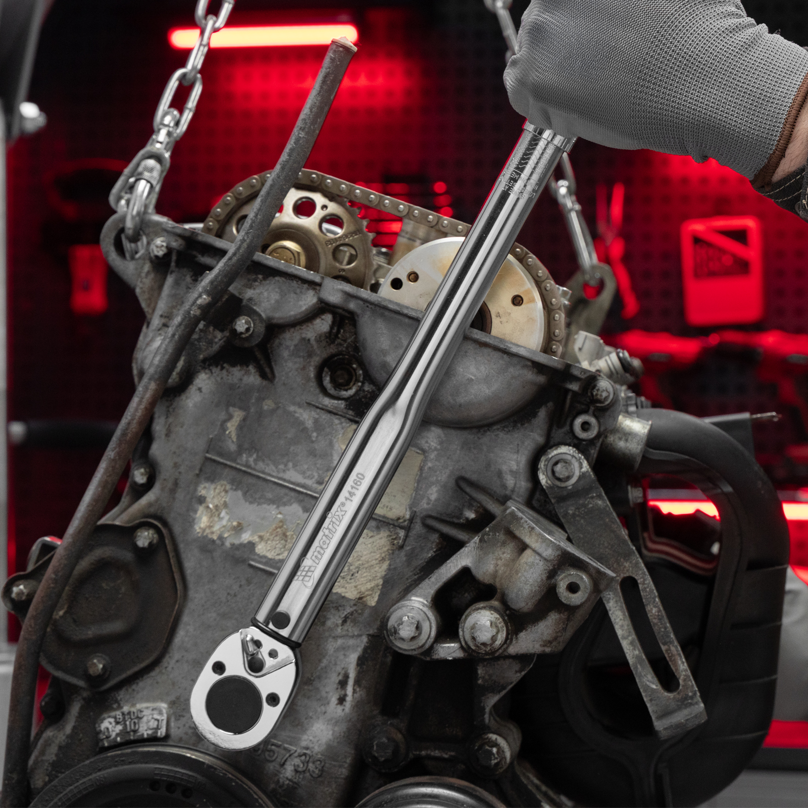 Хромированный динамометрический ключ Matrix 14160 из стали CrV, с посадочным квадратом 1/2", позволяет затягивать резьбовые соединения с максимальным усилием от 42 до 210 Нм. Щелчковый механизм контроля удобен для работы в условиях плохой видимости. Ключ используется в ремонтных мастерских, на СТО, пригодится также для самостоятельного обслуживания авто.