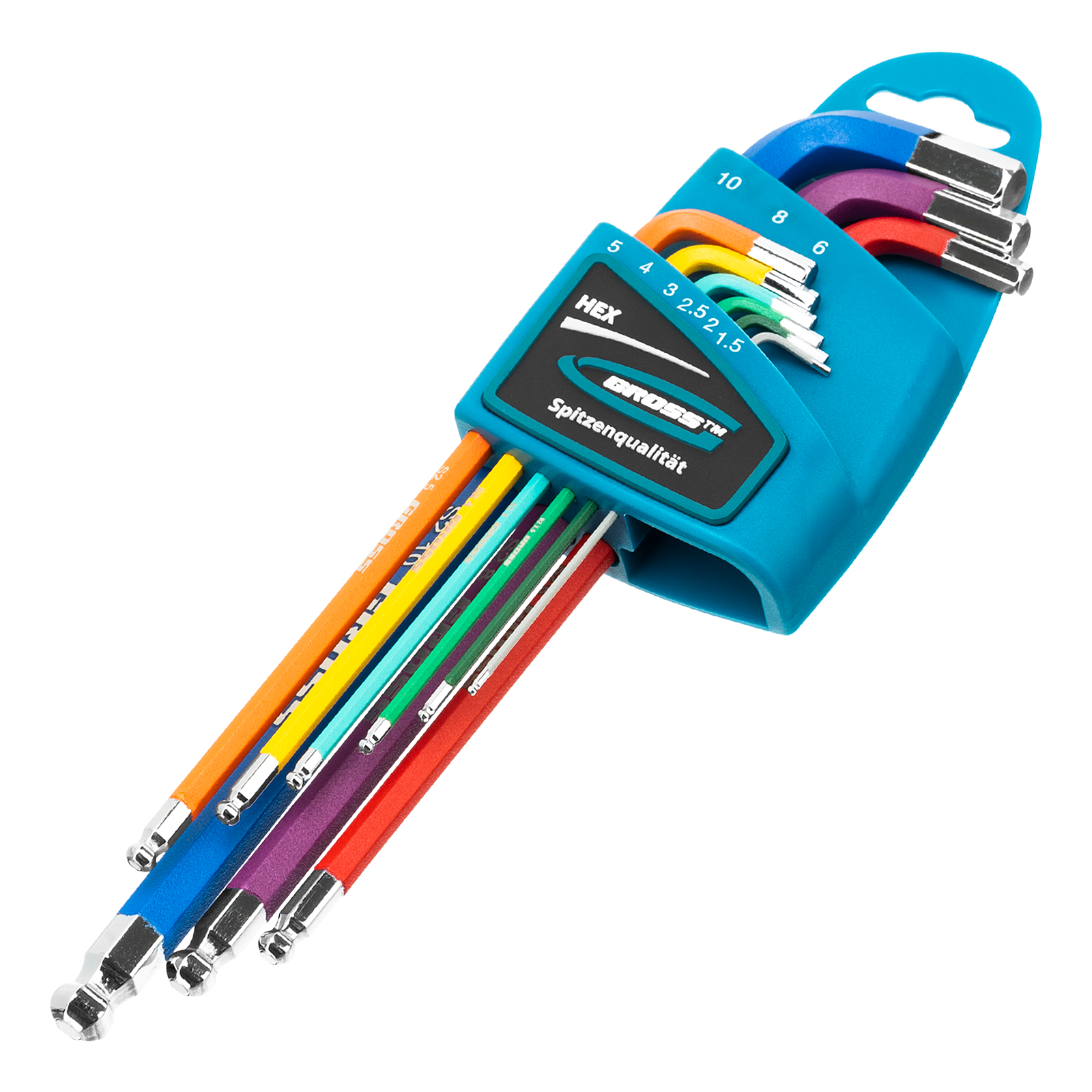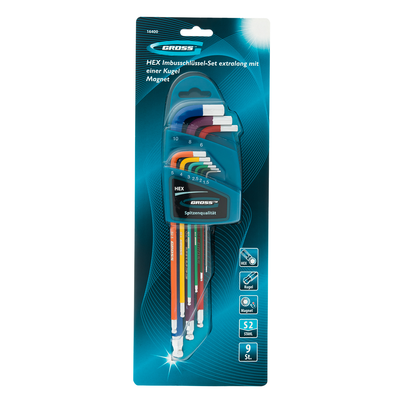 Набор экстрадлинных имбусовых ключей HEX Gross 16400 из стали S2, с шаром и магнитом, с покрытием хром/краска, включает 9 инструментов размером 1,5-10 мм и используется для работы с евровинтами, имеющими шестигранные шлицы. Ключи увеличенной длины облегчают действия в ограниченном пространстве, а также позволяют экономить усилия во время работы. Набор будет полезен во время проведения монтажных работ, сборки мебели и различных конструкций.
