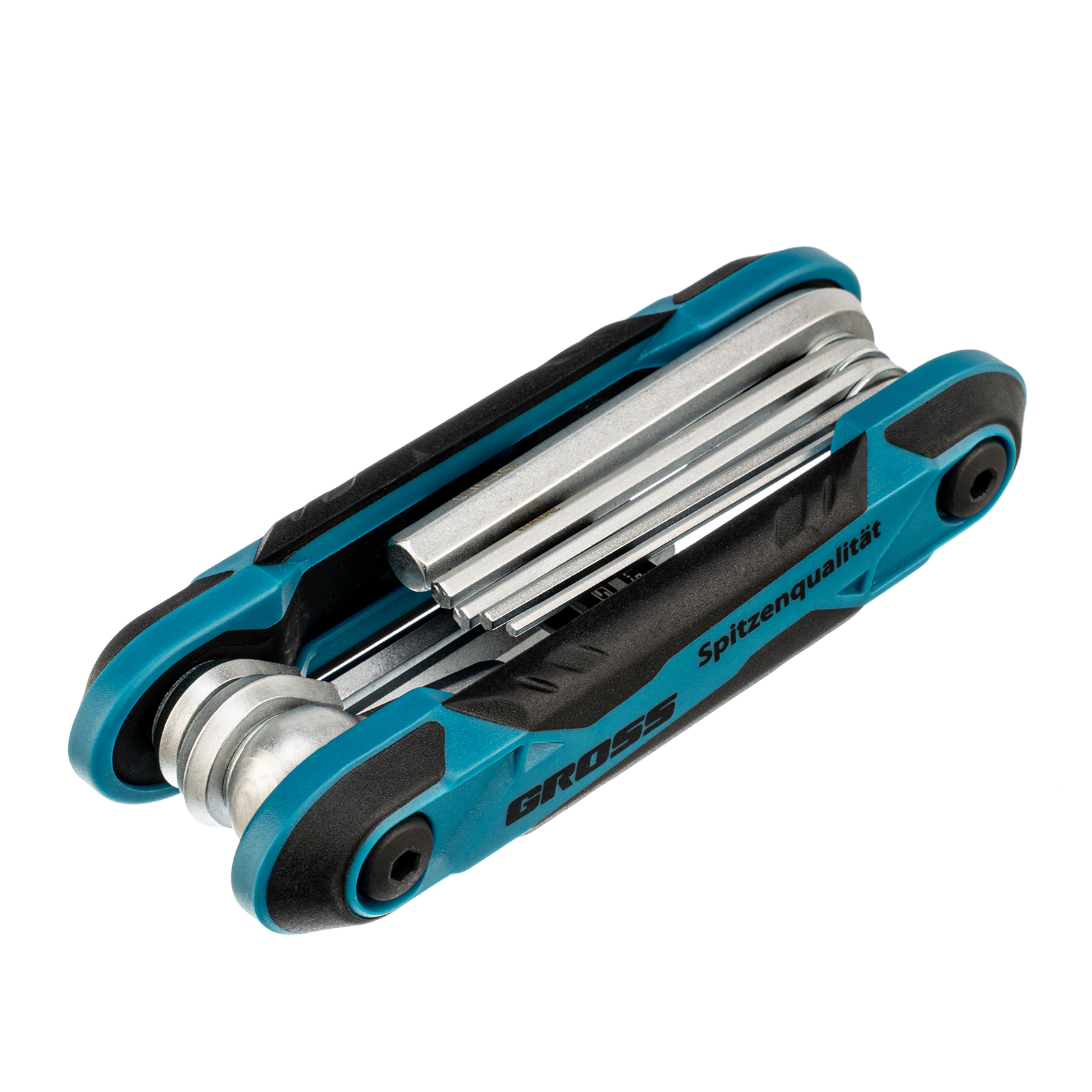 Набор складных имбусовых ключей Gross 16412 из стали CrV включает 8 предметов и применяется для демонтажа и монтажа евровинтов со шлицами HEX размером 1,5-8 мм. С его помощью можно собрать мебель, отремонтировать спортинвентарь, бытовую технику. Набор подходит для профессионального и домашнего использования.