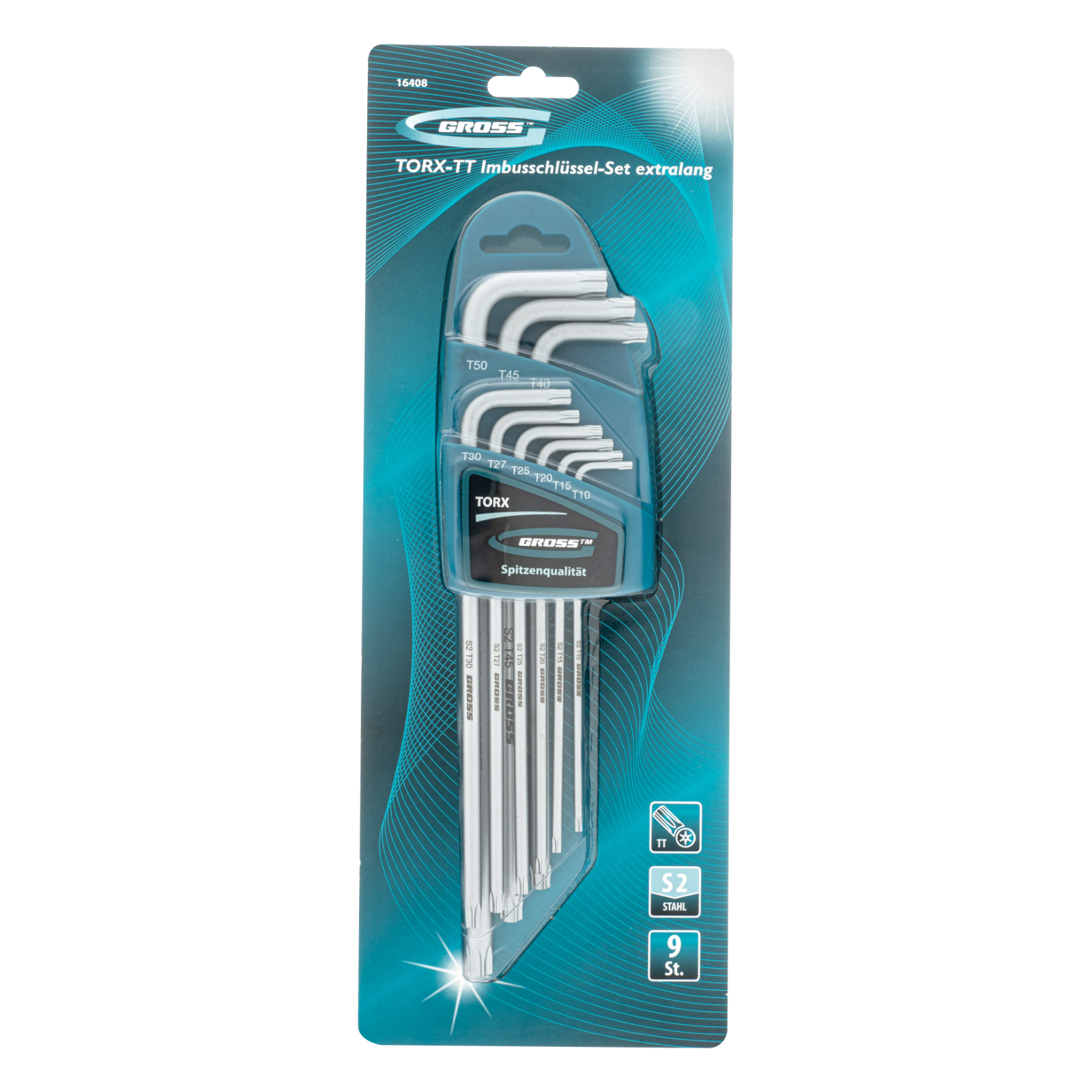 Набор Gross 16408 из стали S2 включает в себя 9 экстрадлинных сатинированных имбусовых ключей для работы с крепежом, имеющим шлицы Torx и Tamper-Torx T10-T50. Благодаря увеличенной длине и Г-образной форме ключи позволяют действовать в труднодоступных местах и экономить усилия при монтаже и демонтаже крепежа. Набор пригодится для ремонта электроприборов.