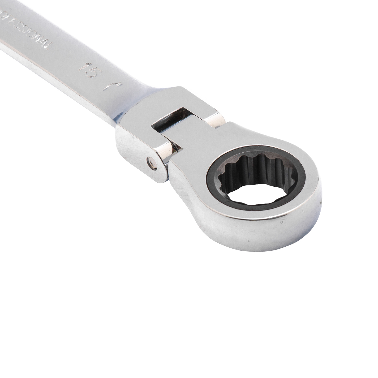 - Удобная работа в труднодоступных местах — храповой механизм на 72 зуба обеспечивает плавное вращение (шаг трещотки составляет 5°), а шарнир позволяет поворачивать рабочую часть под углом.